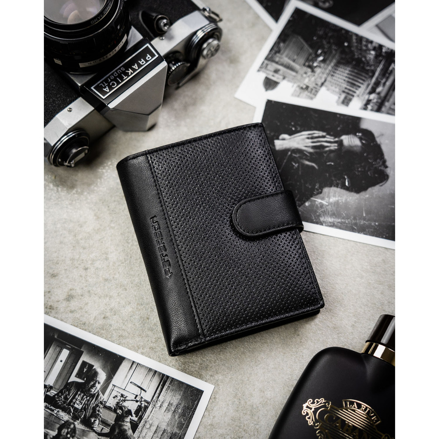 Portfel wykonano ze skóry naturalnej, dzięki czemu jest trwały, przyjemny w dotyku i prezentuje się wyjątkowo elegancko.