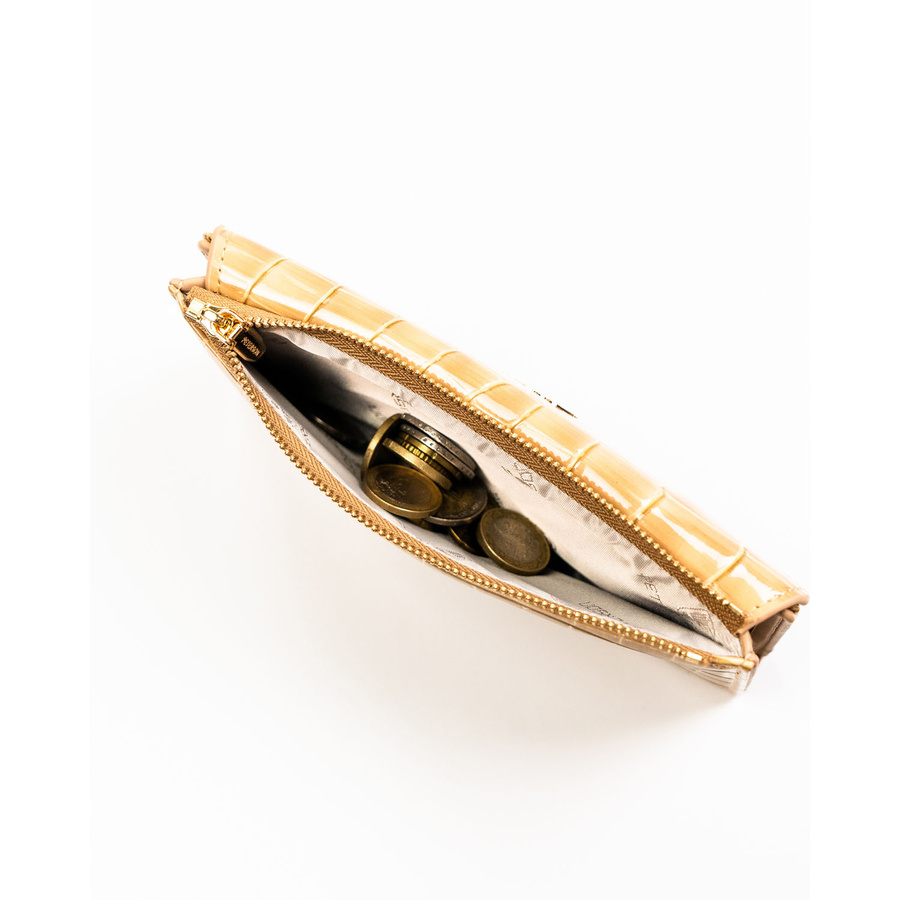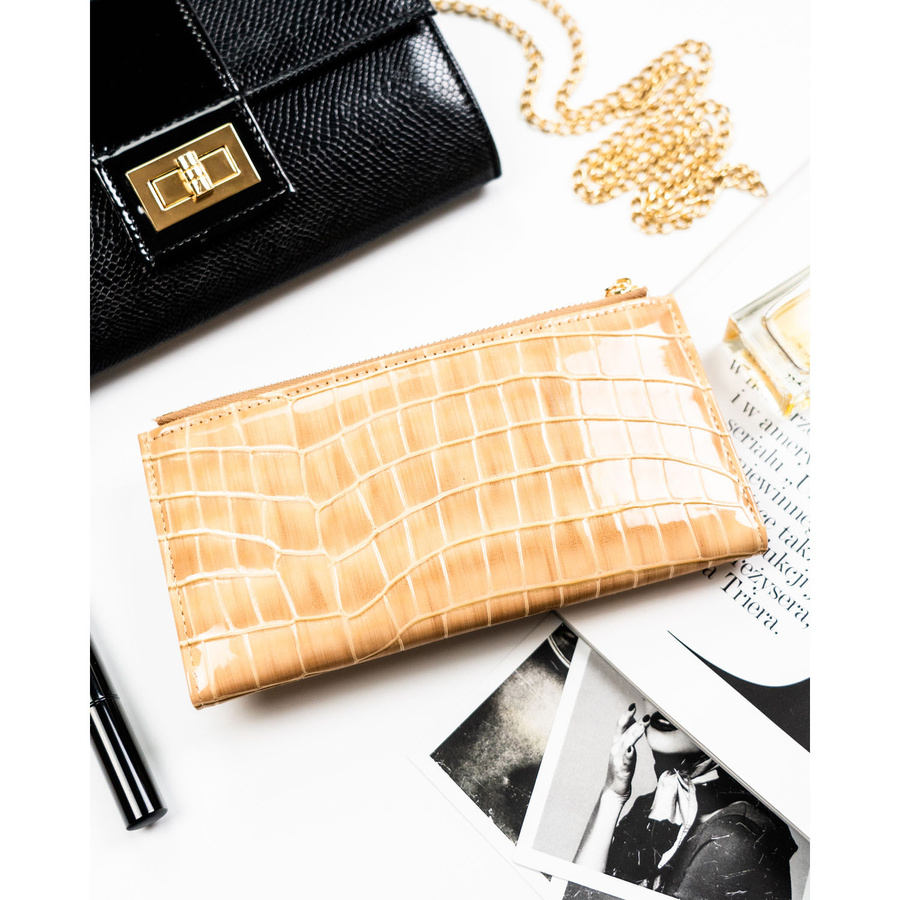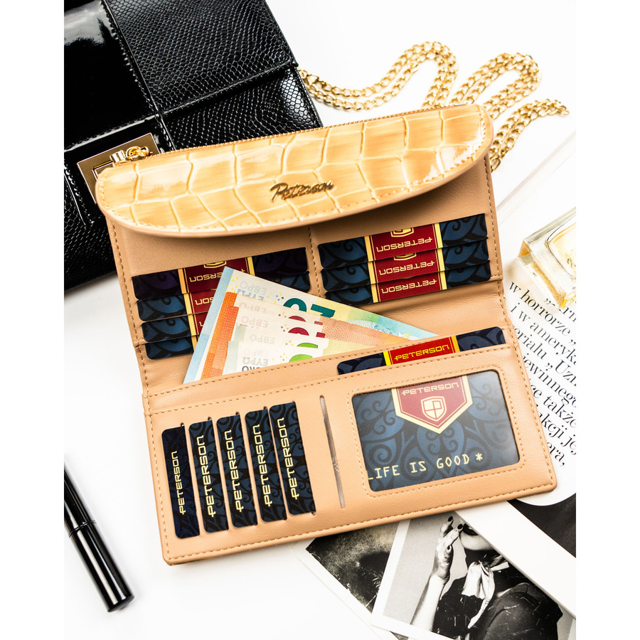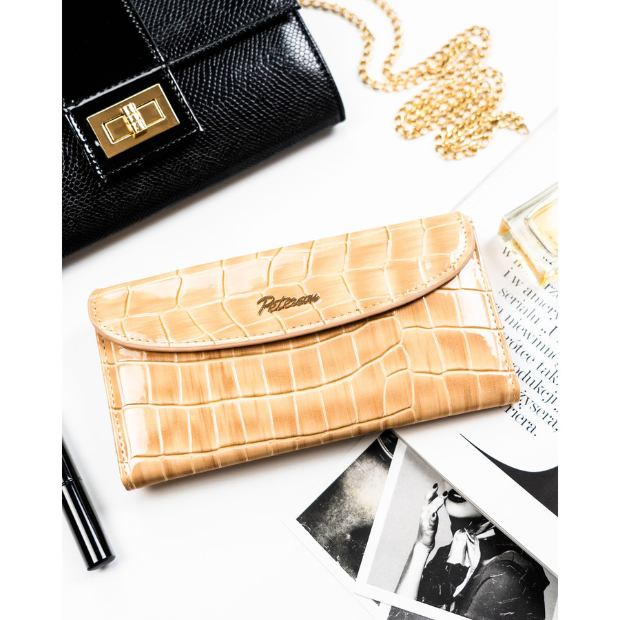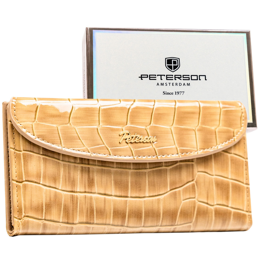 Beżowy portfel damski ze skóry ekologicznej z tłoczeniem na wzór skóry krokodyla - Peterson