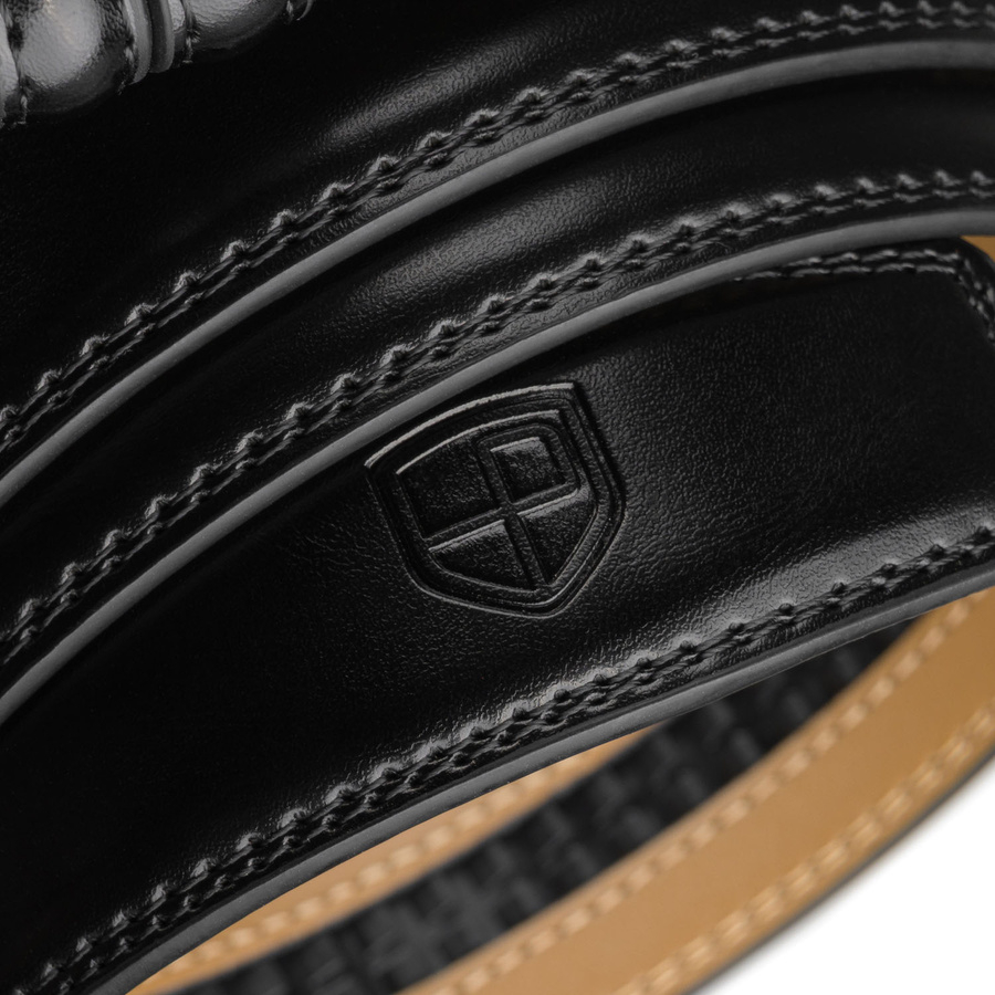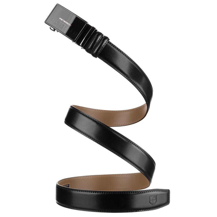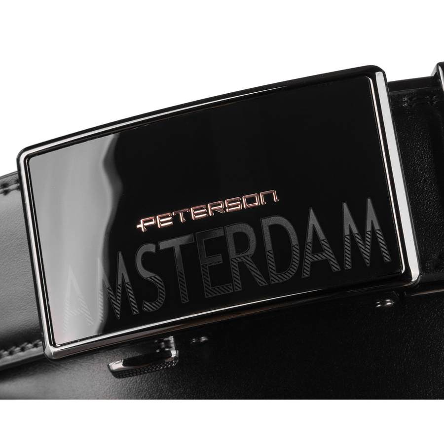 Czarny, skórzany pasek męski z automatyczną klamrą - Peterson