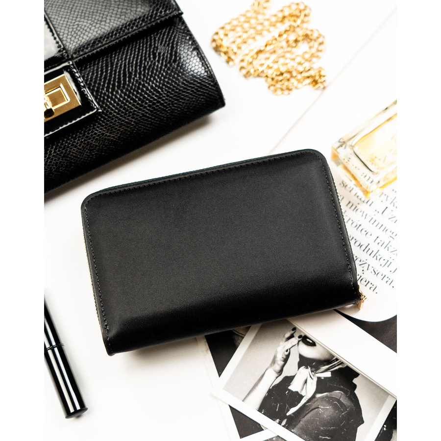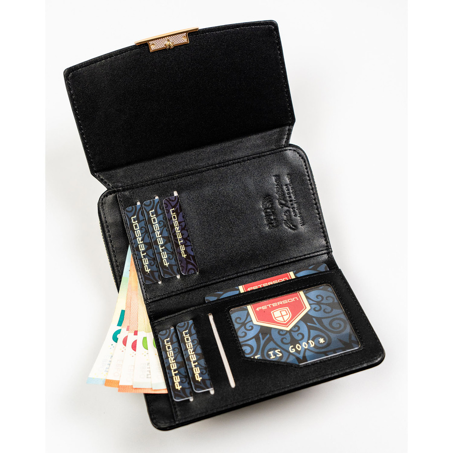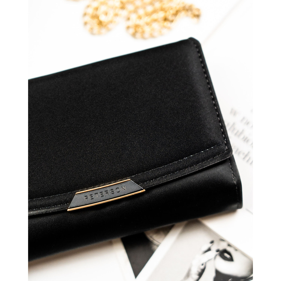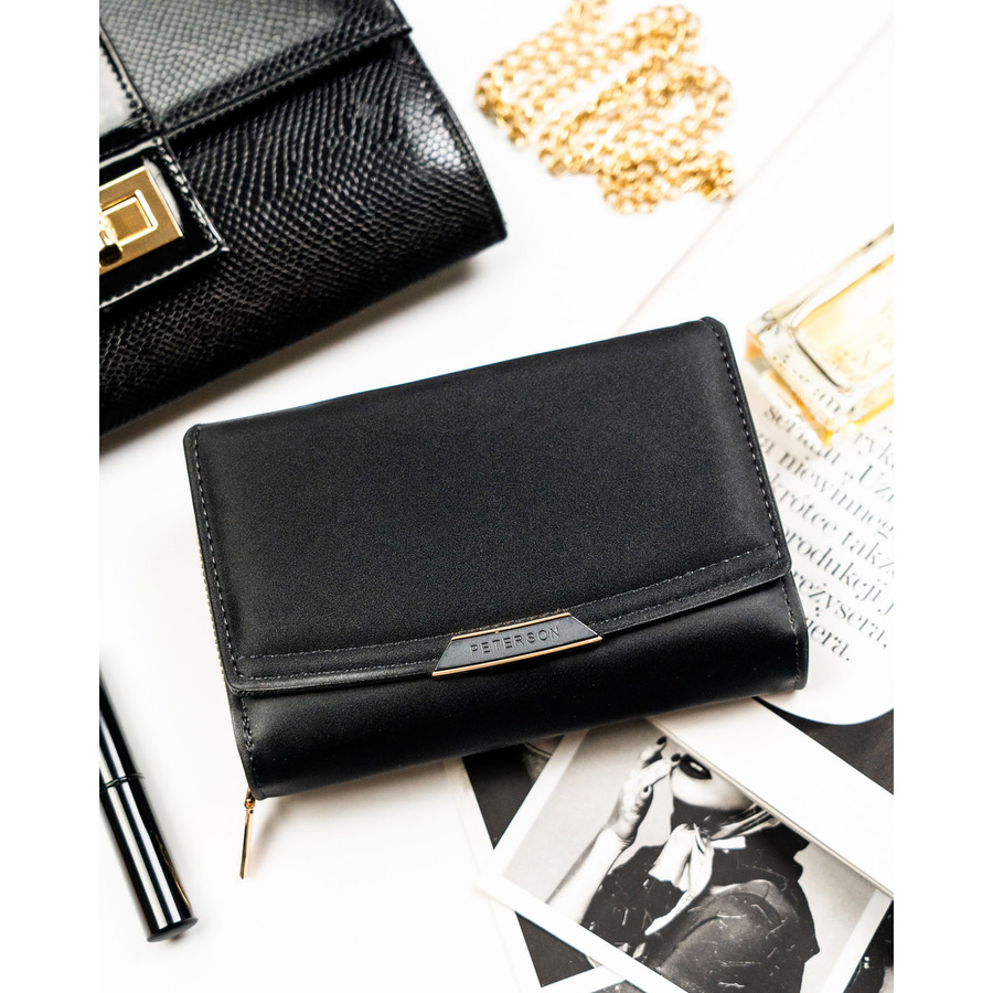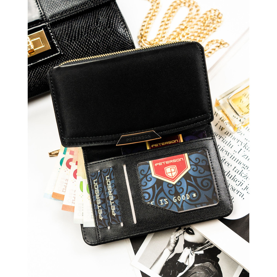 Portfel damski ze skóry ekologicznej w czarnym kolorze wyposażony w system RFID - Peterson