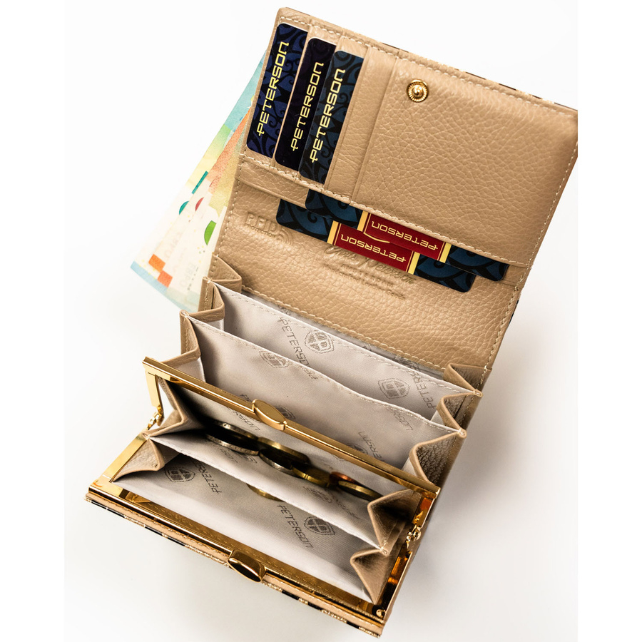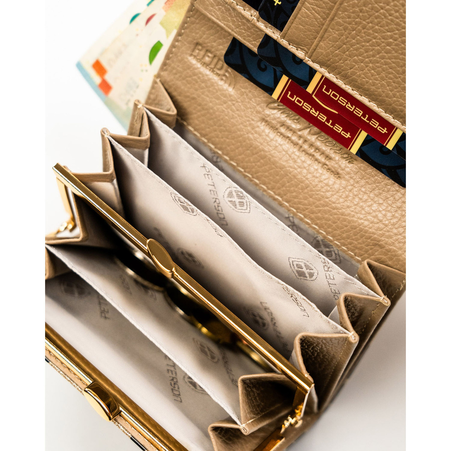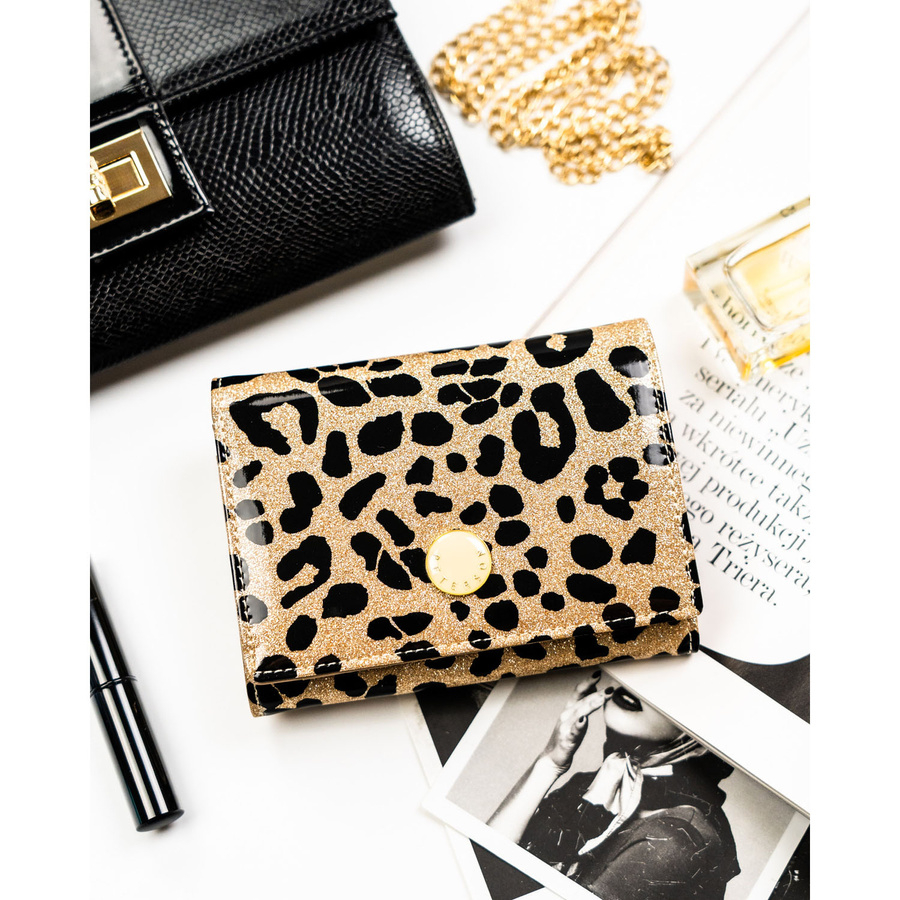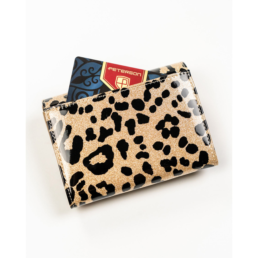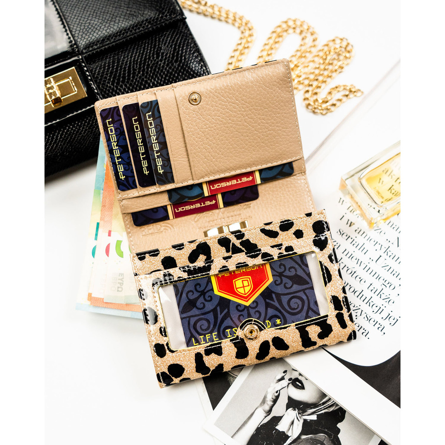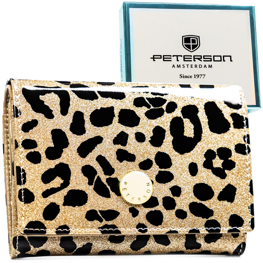 Portfel damski ze skóry ekologicznej i naturalnej w złotym kolorze w cętki - Peterson