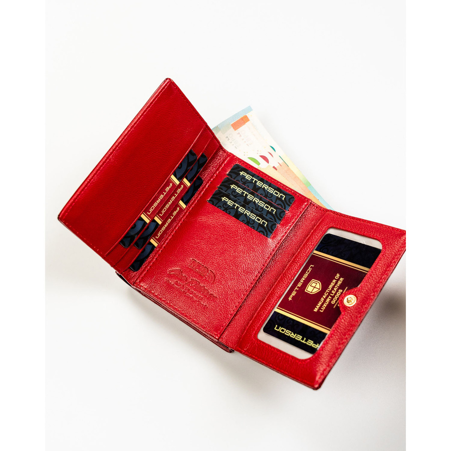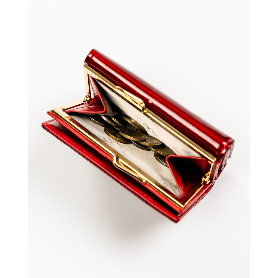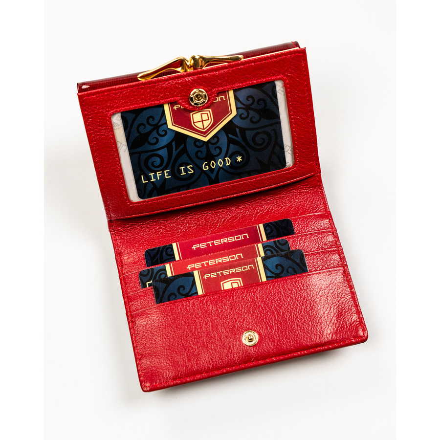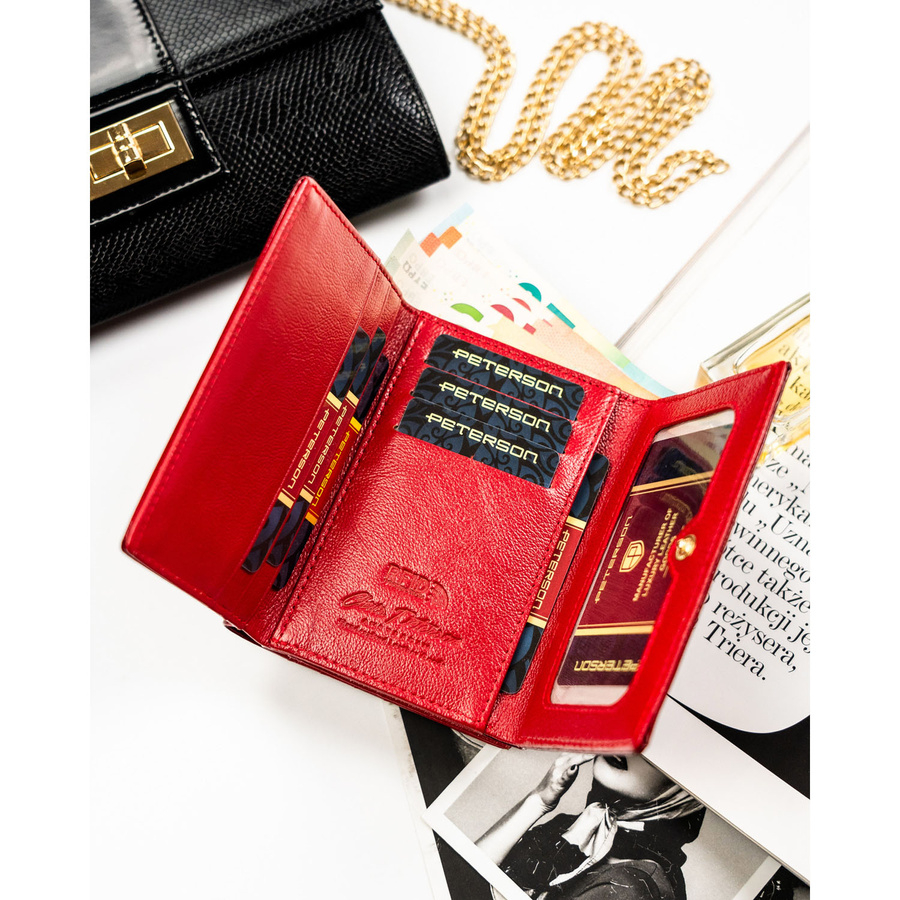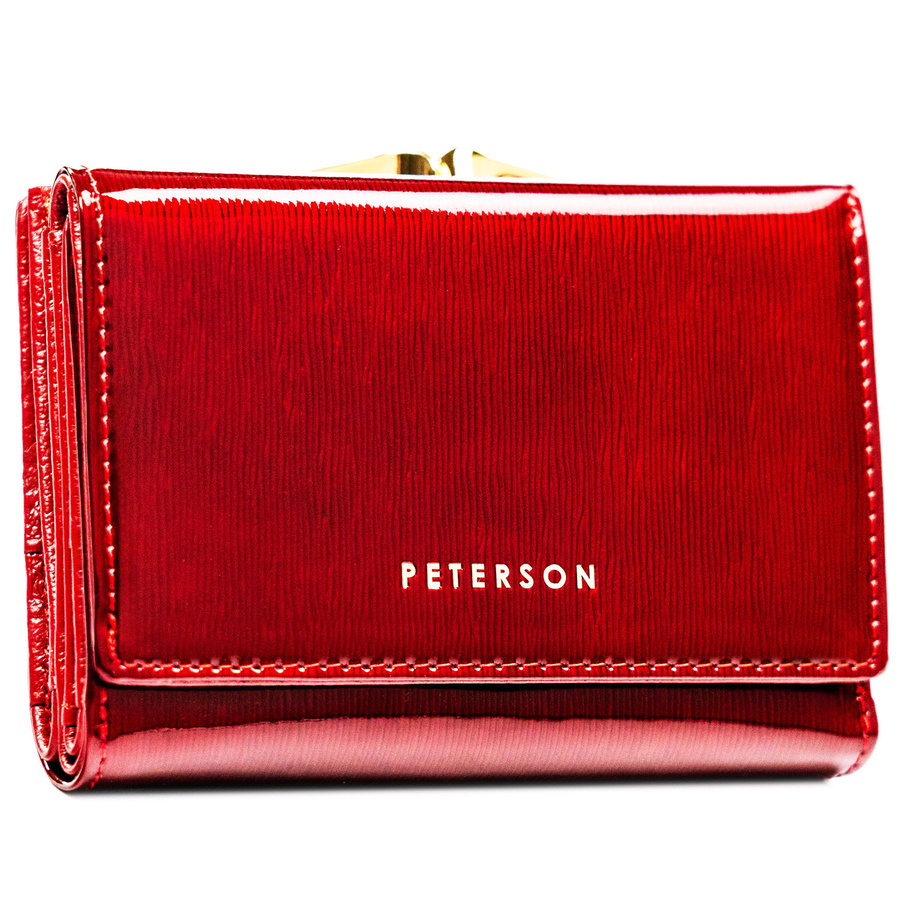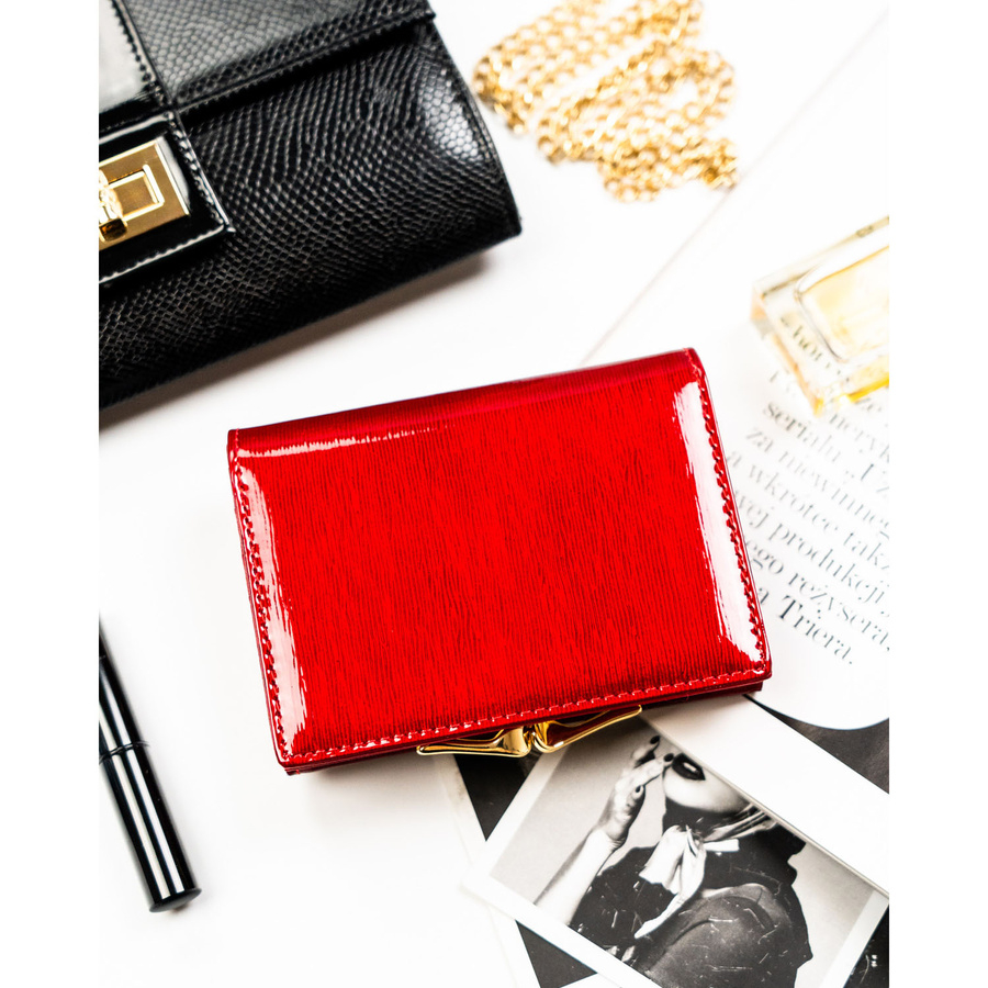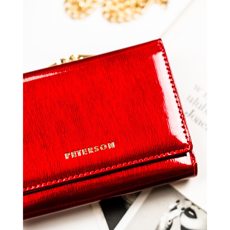 Portfel damski z lakierowanej skóry naturalnej w czerwonym kolorze - Peterson