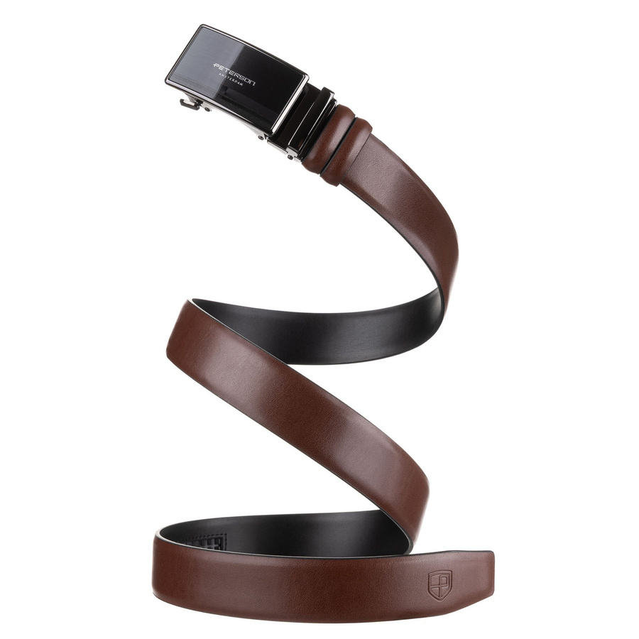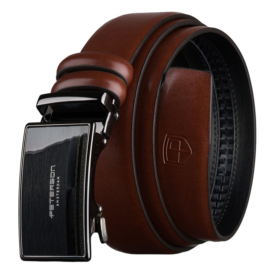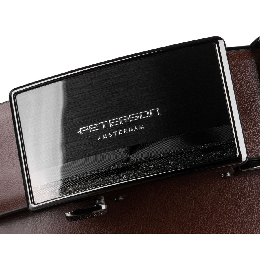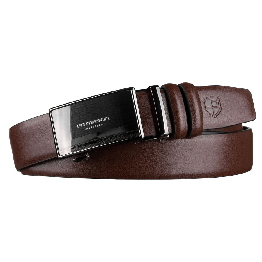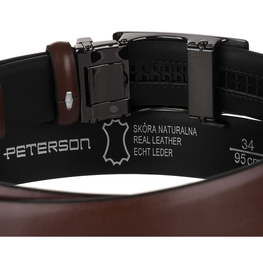 Skórzany pasek męski w brązowym kolorze z automatyczną klamrą - Peterson