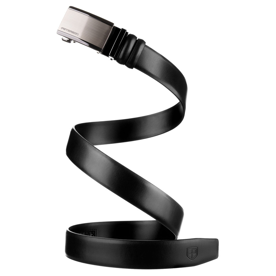 Czarny pasek męski z automatyczną klamrą wykonany ze skóry naturalnej - Peterson