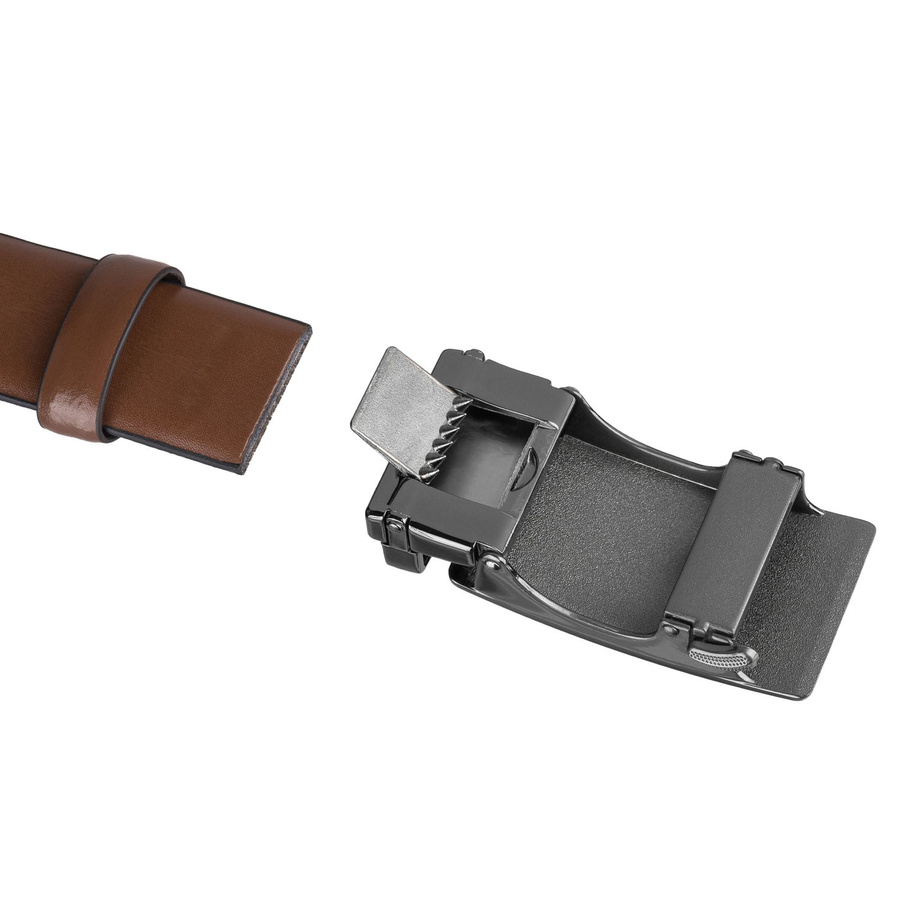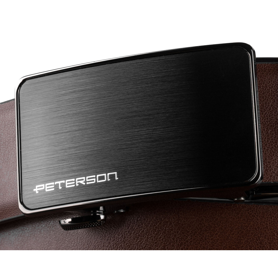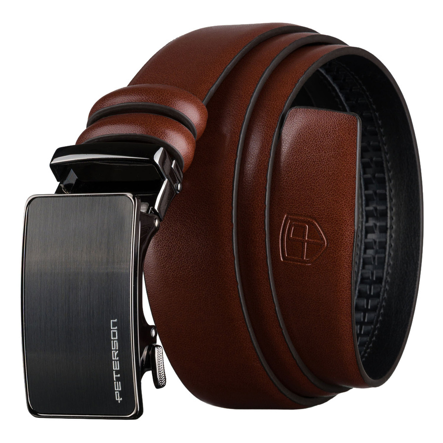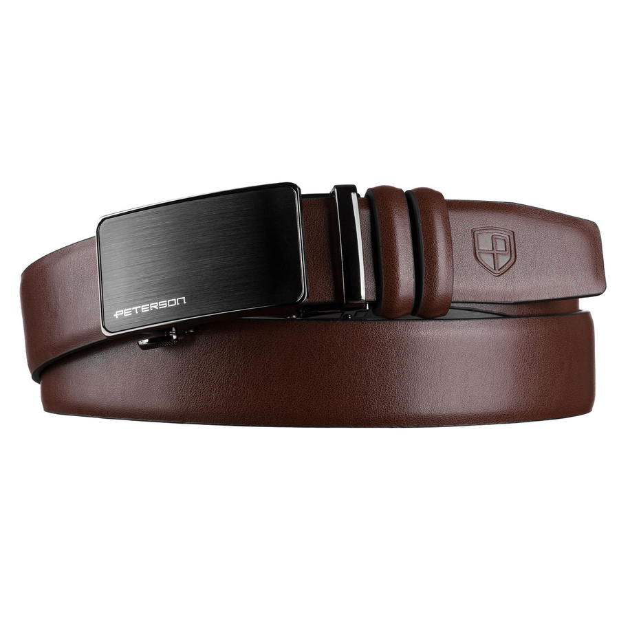 Pasek męski z automatyczną klamrą wykonany ze skóry naturalnej w brązowym kolorze - Peterson