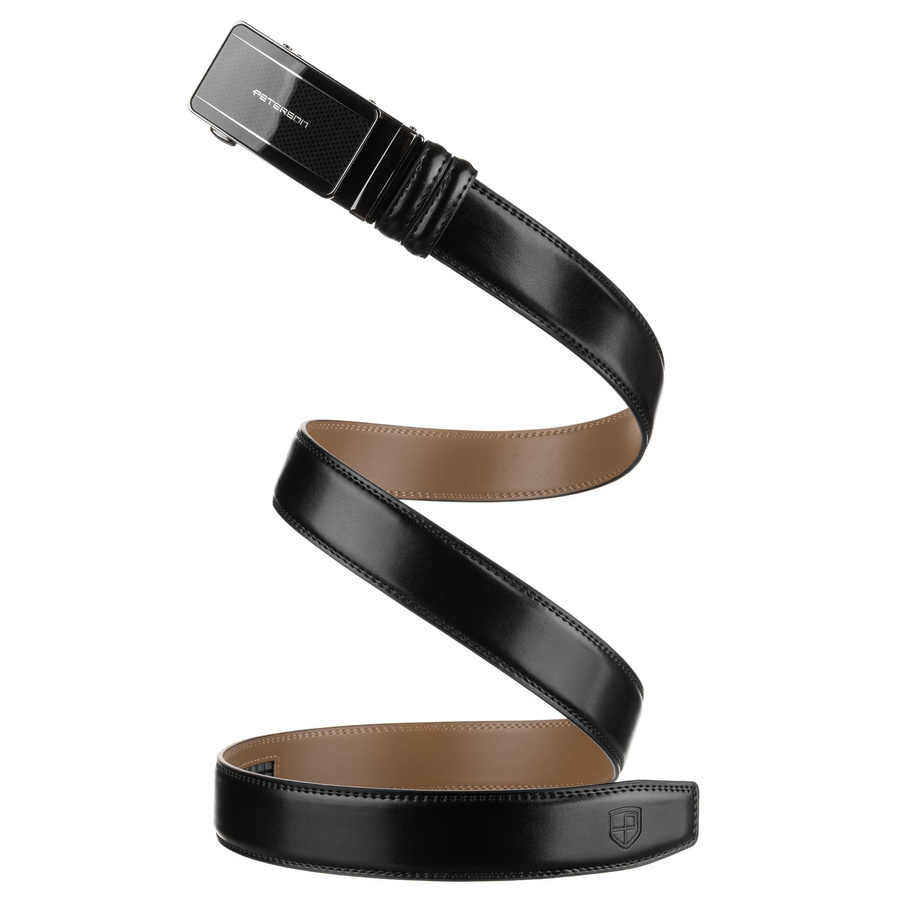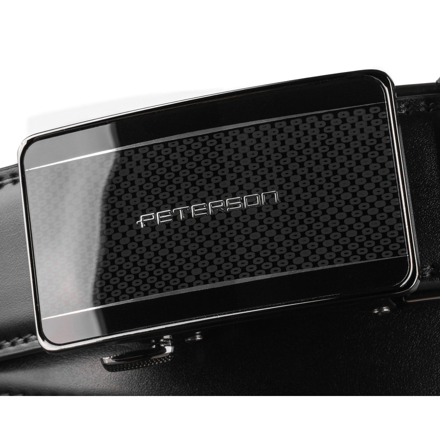 Czarny pasek męski z automatyczną klamrą wykonany ze skóry naturalnej - Peterson