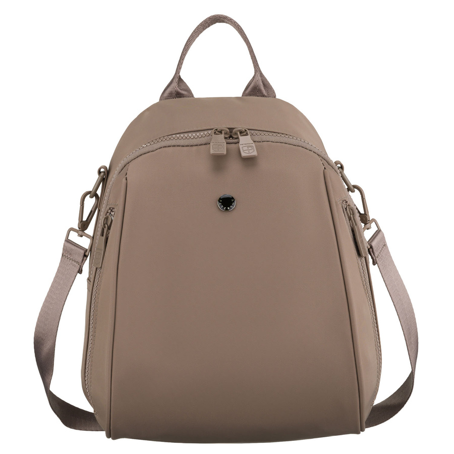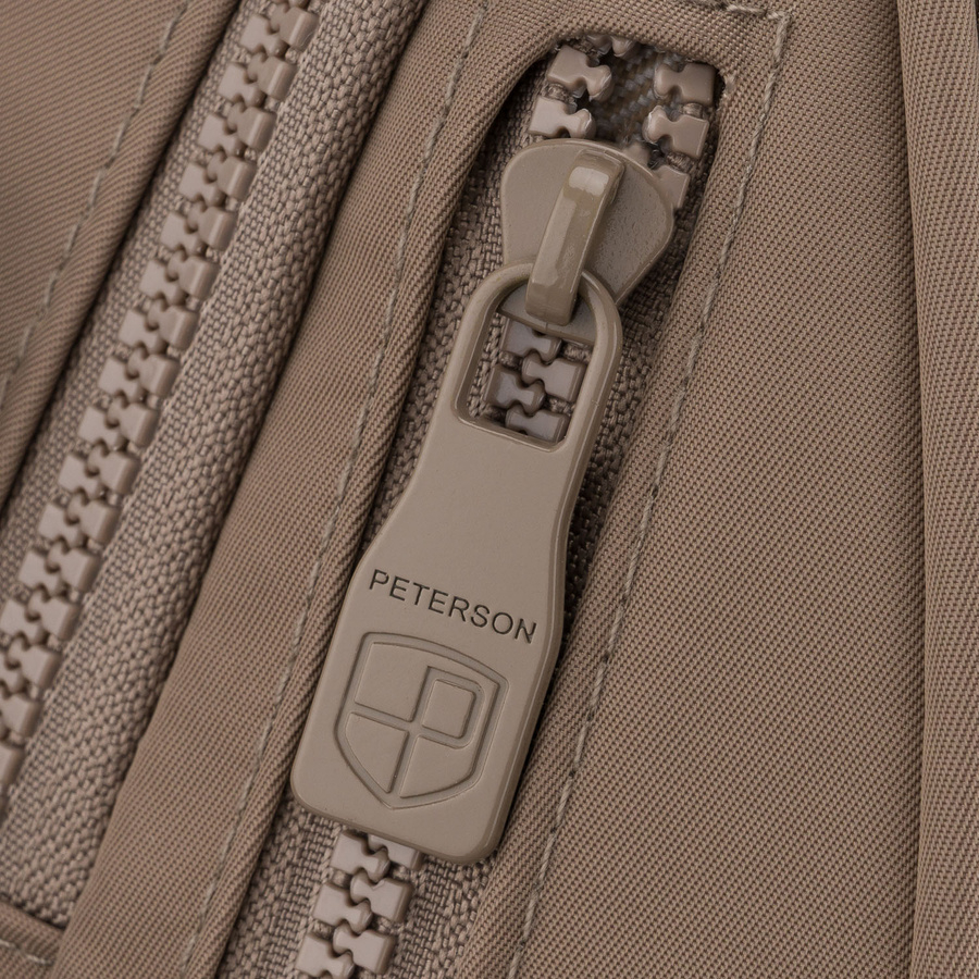 Mały, beżowy plecak damski wykonany z poliestru, wyposażony w dodatkowy pasek - Peterson