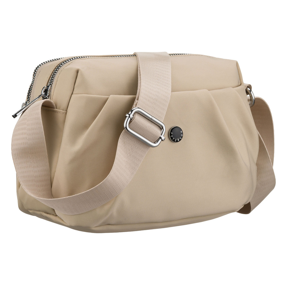 Listonoszka damska z poliestru w kolorze ecru, dwukomorowa z zewnętrzną kieszonką - Peterson