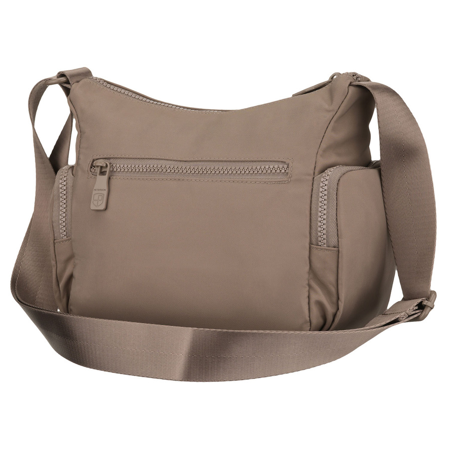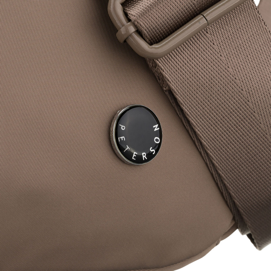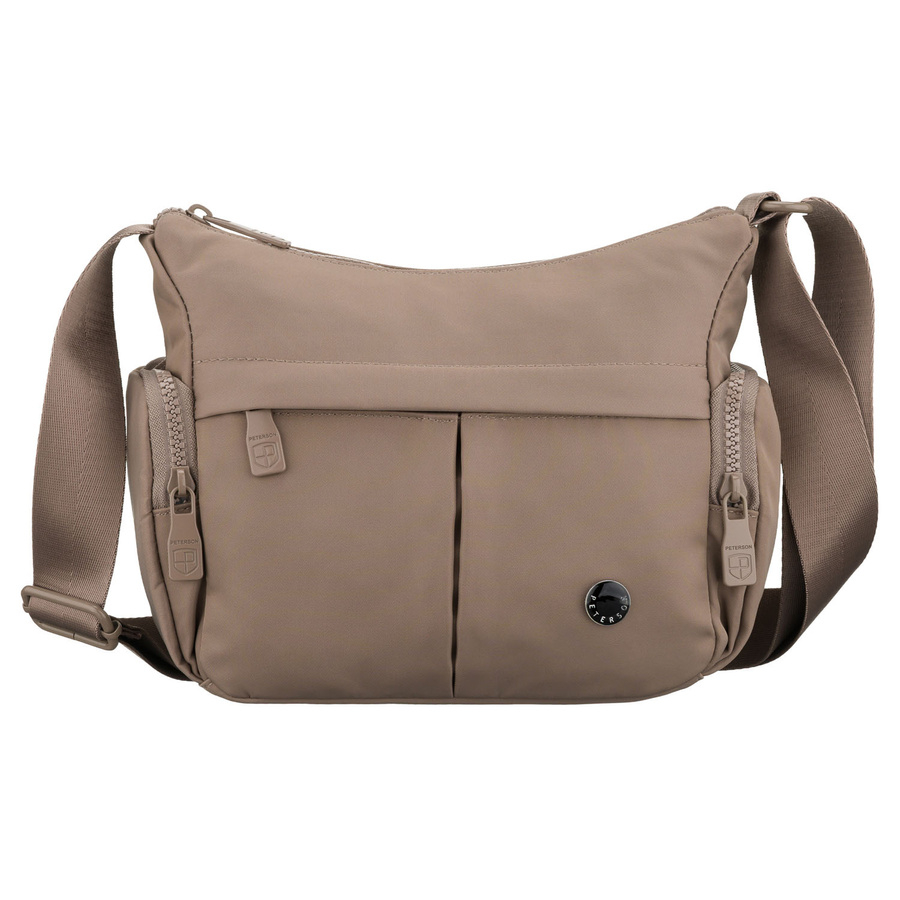 Beżowa listonoszka damska z poliestru zawieszona na szerokim pasku, dwukomorowa - Peterson