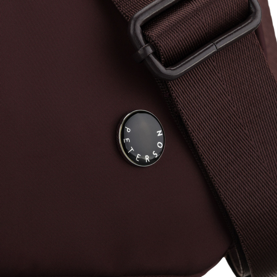 Bordowa listonoszka damska z poliestru zawieszona na szerokim pasku, dwukomorowa - Peterson