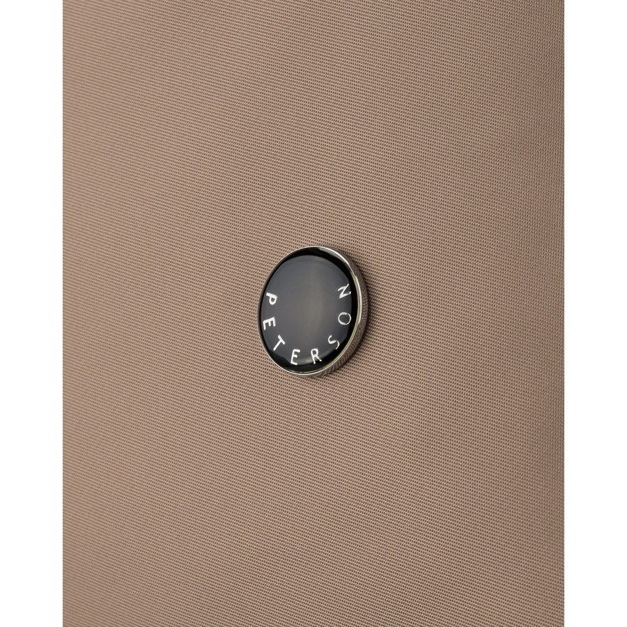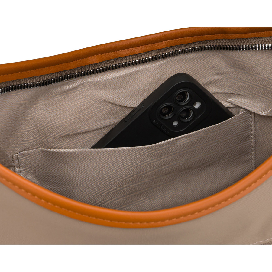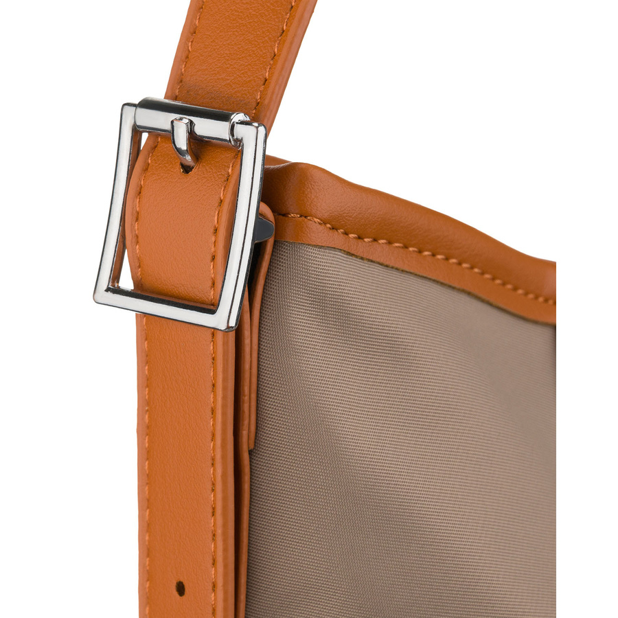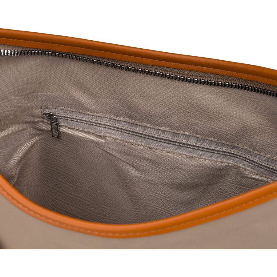 Beżowa listonoszka damska z poliestru i skóry ekologicznej wyposażona w kieszonkę zewnętrzną - Peterson