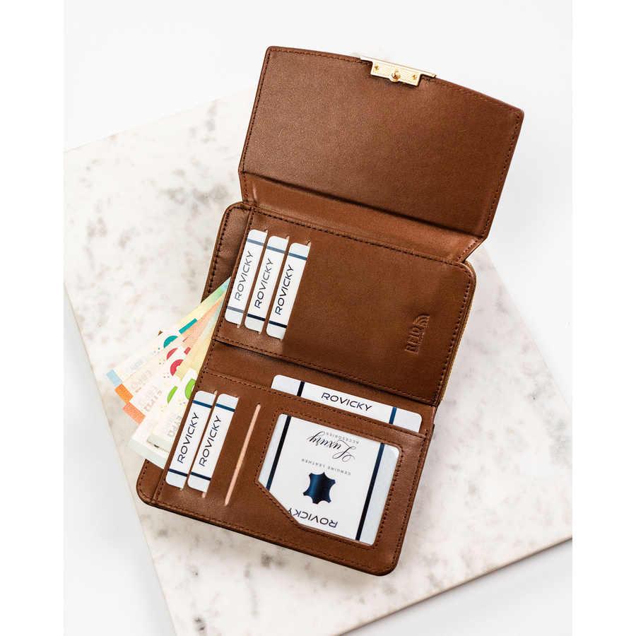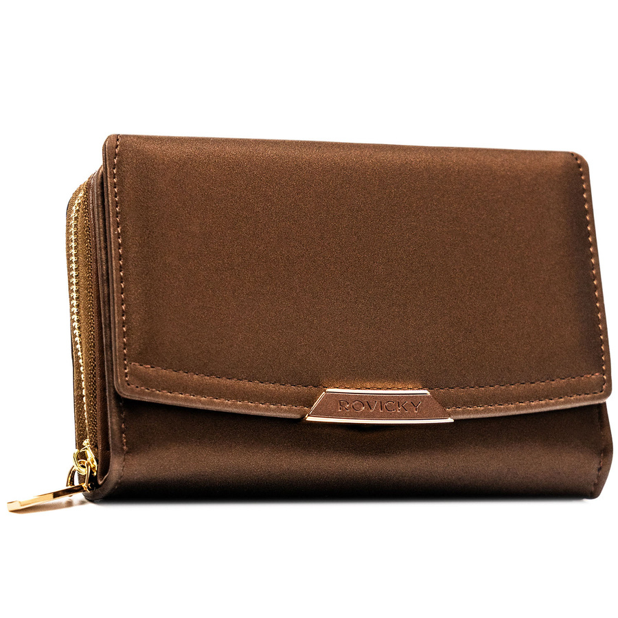 Portfel damski Rovicky to połączenie nowoczesnego wzornictwa i świetnej funkcjonalności. Jego kompaktowy, poziomy układ został zaprojektowany tak, aby zapewnić maksymalną wygodę użytkowania - bez rezygnowania z przestrzeni na niezbędne akcesoria. Idealny dla kobiet, które chcą mieć wszystko pod ręką, ale w lekkiej i zgrabnej formie.