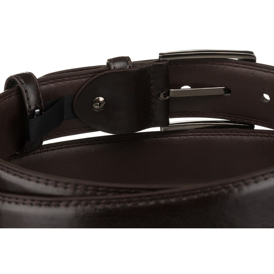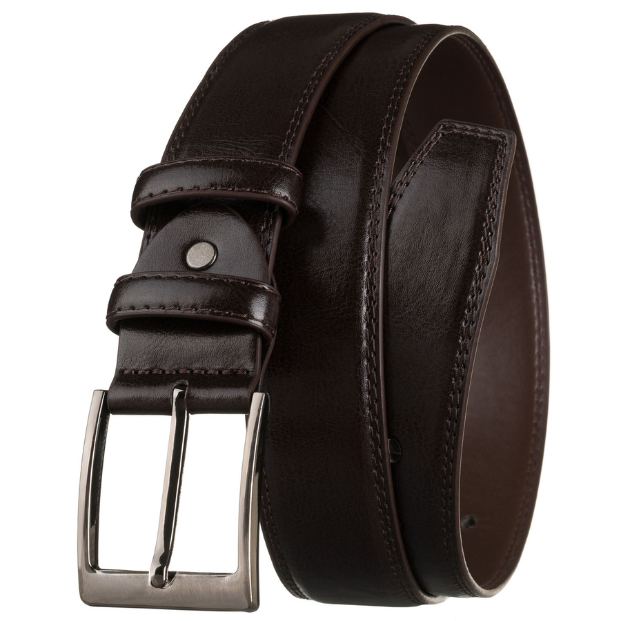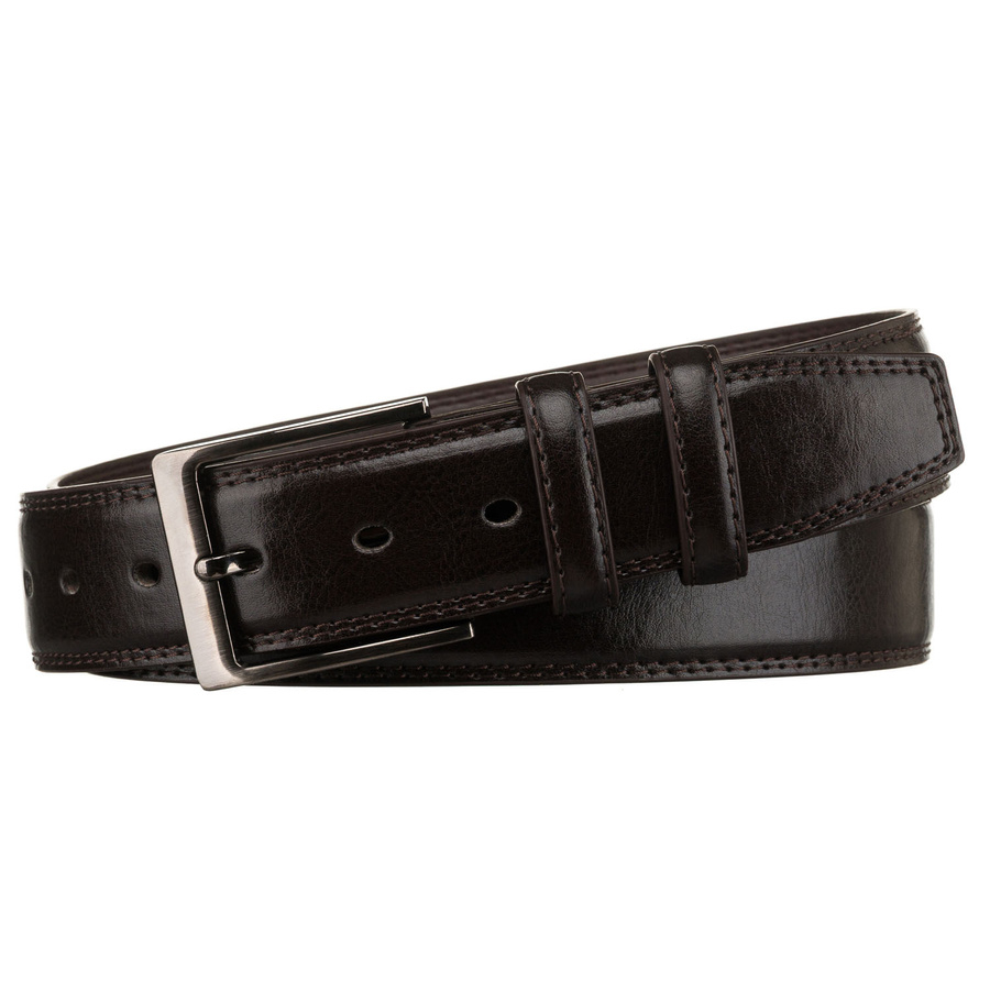 Brązowy pasek męski ze skóry ekologicznej ze srebrną, klasyczną klamrą