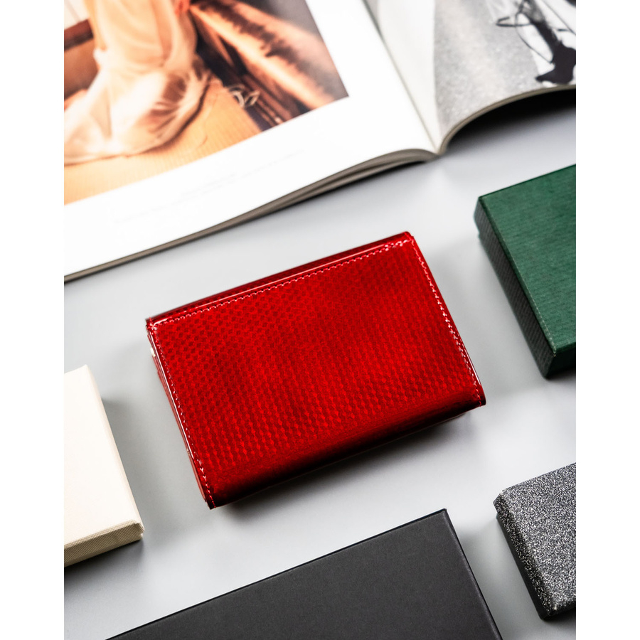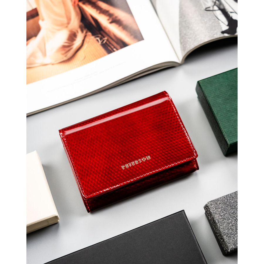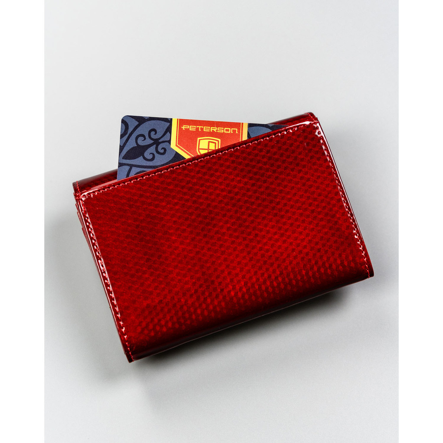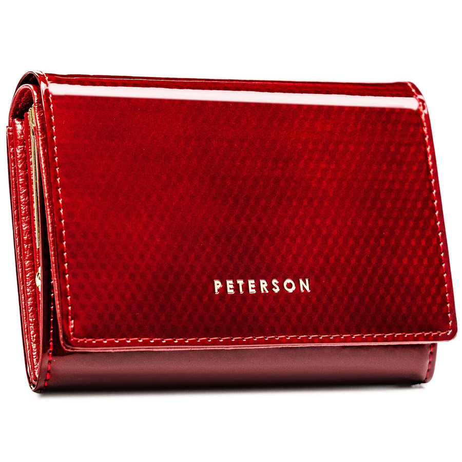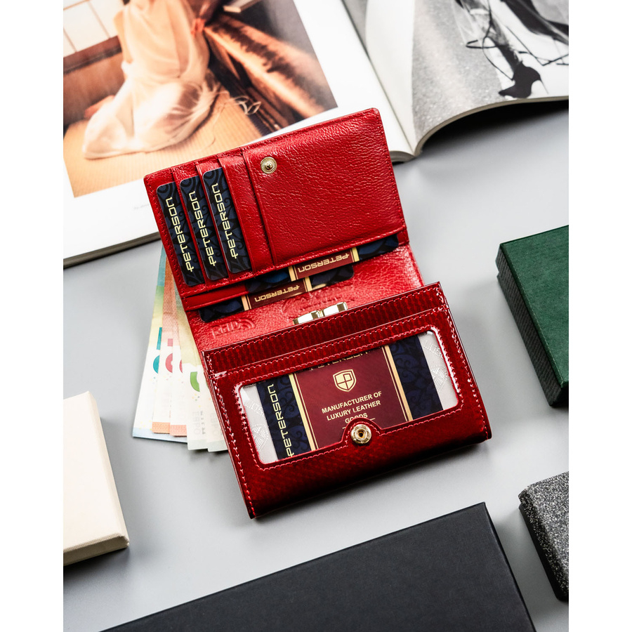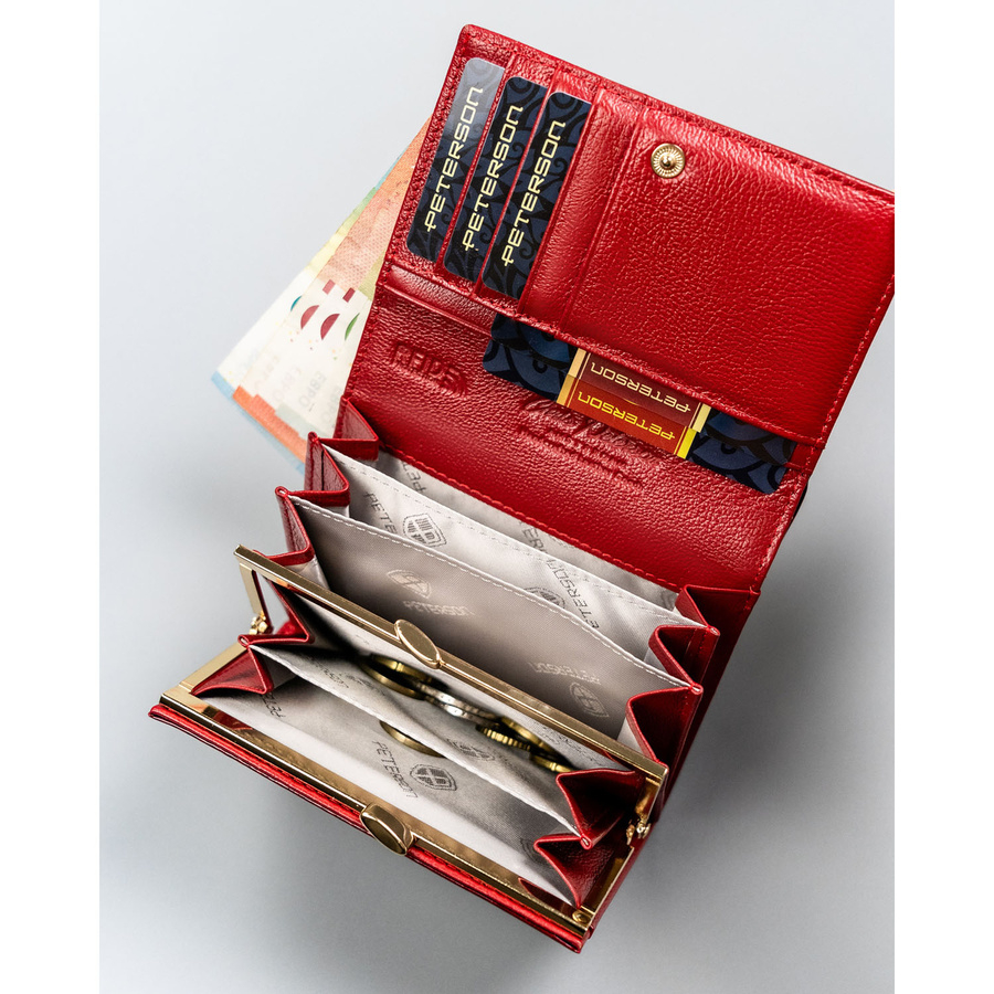 Duży portfel damski ze skóry naturalnej w czerwonym kolorze, zamykany zatrzaskiem - Peterson