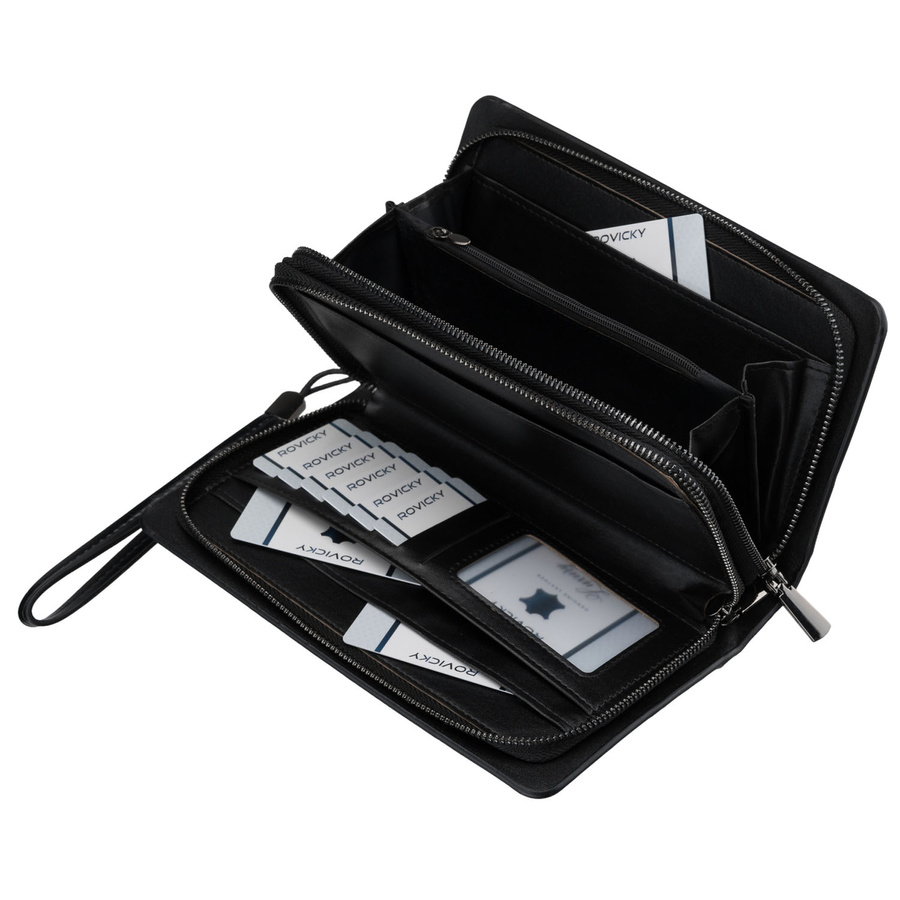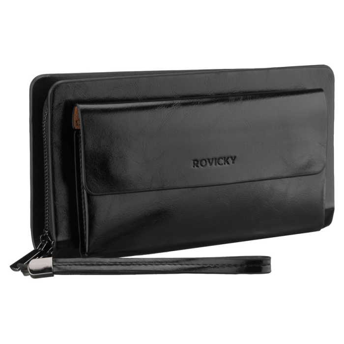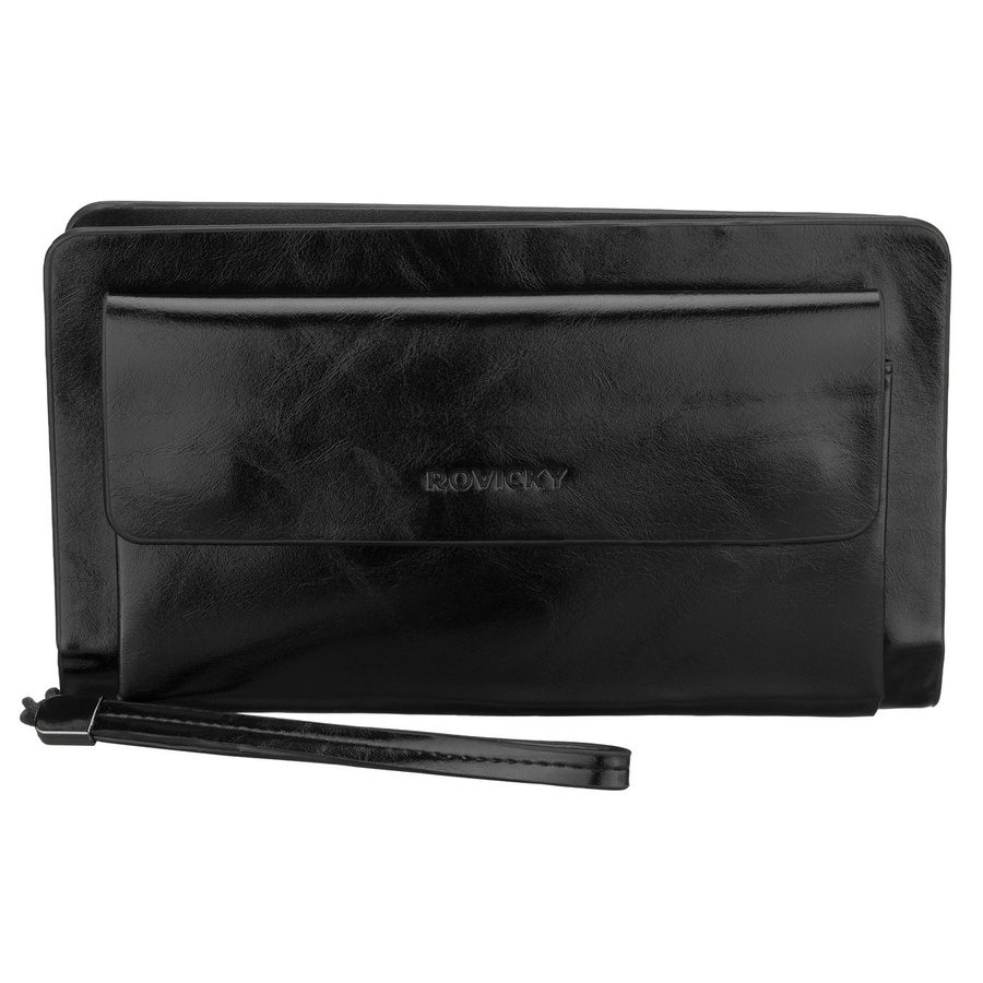 Saszetka męska ze skóry ekologicznej w czarnym kolorze, dwukomorowa - Rovicky