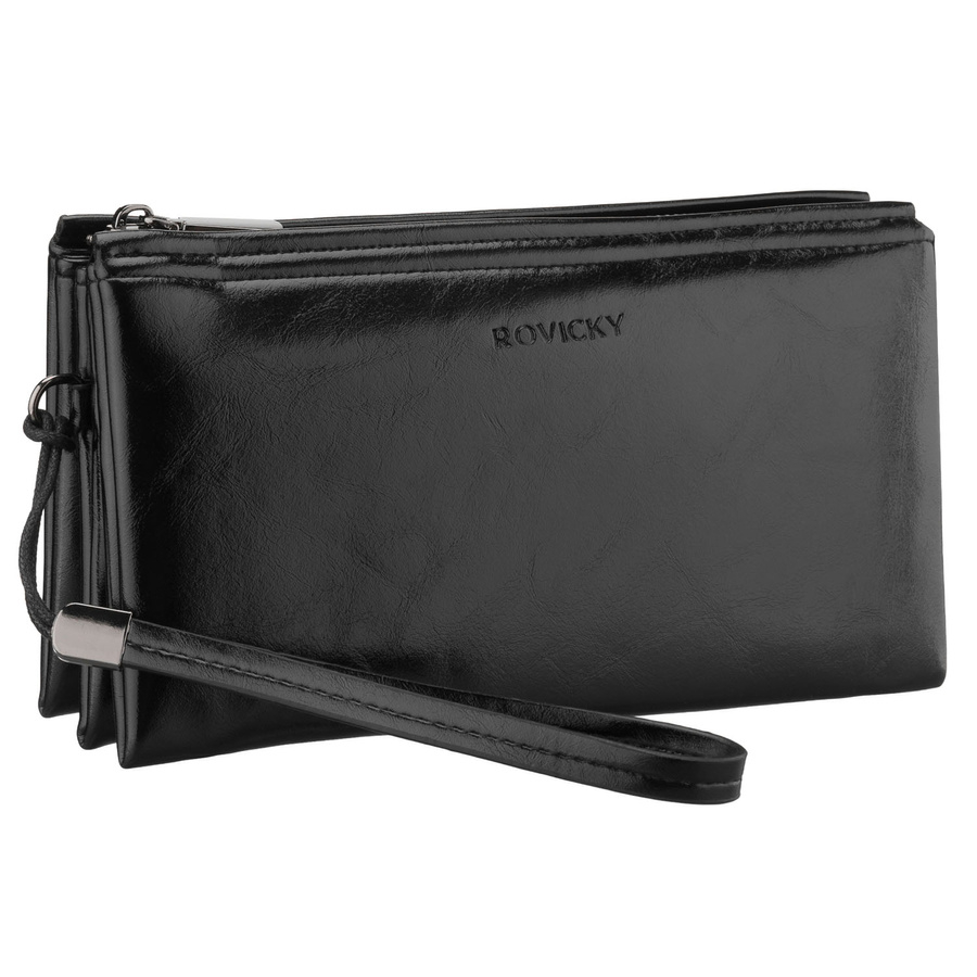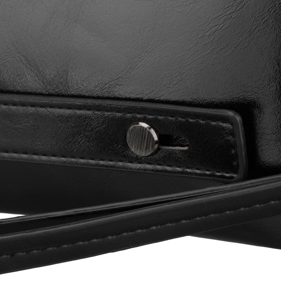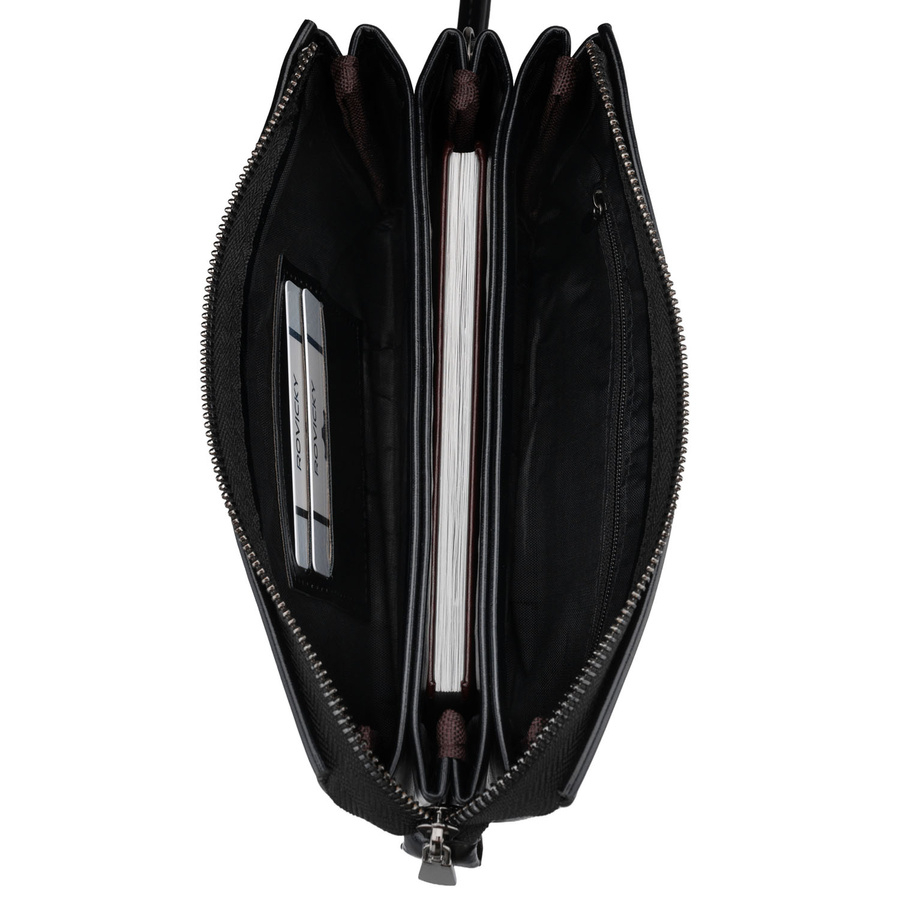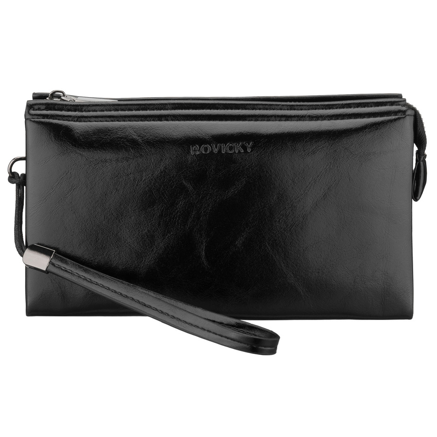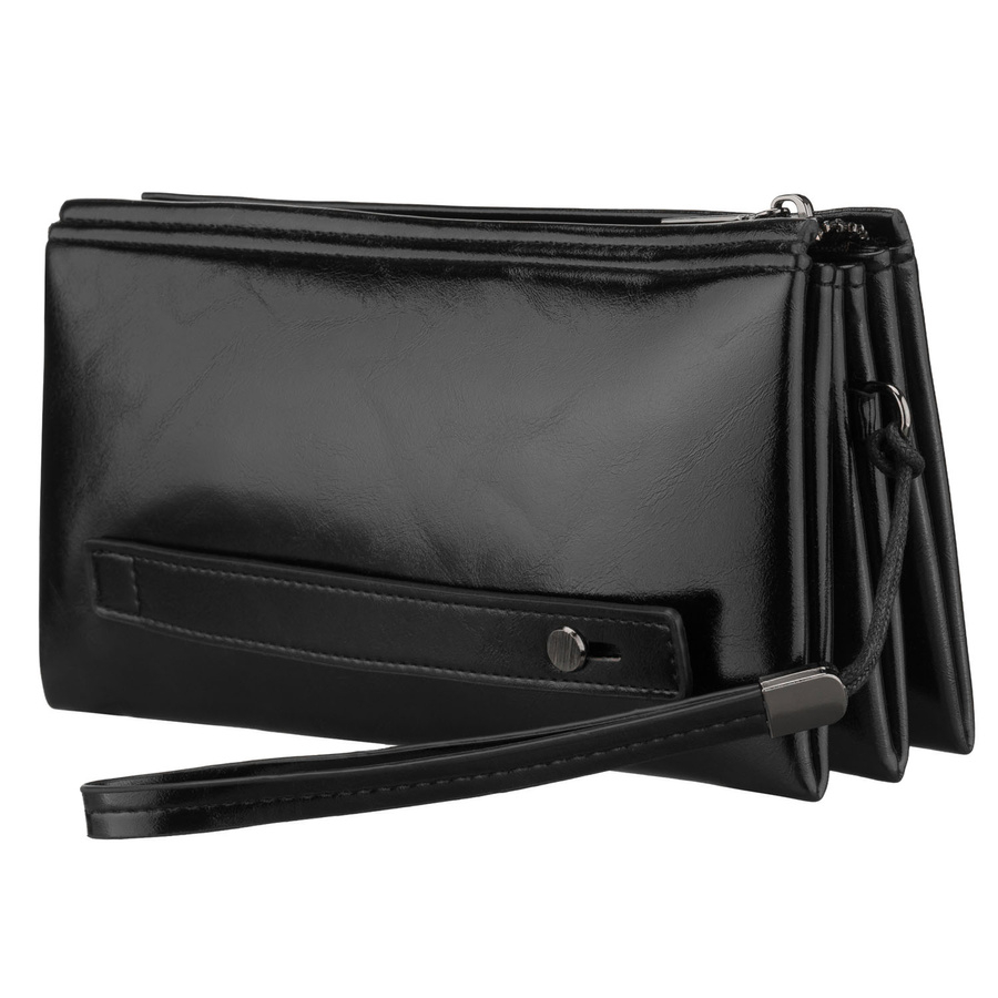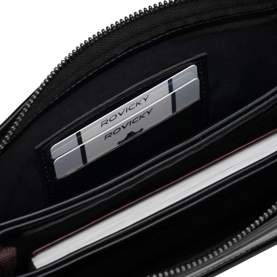 Saszetka męska ze skóry ekologicznej w czarnym kolorze, wyposażona w uchwyt na rękę - Rovicky
