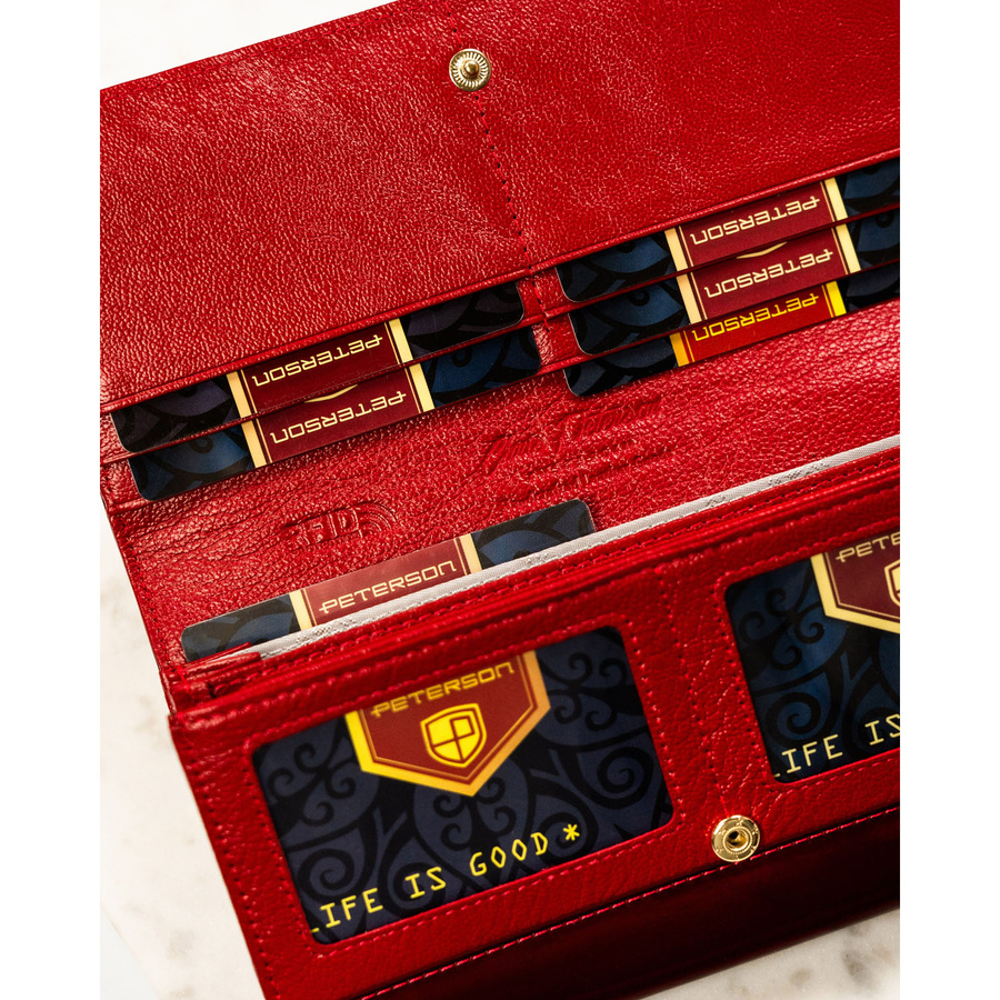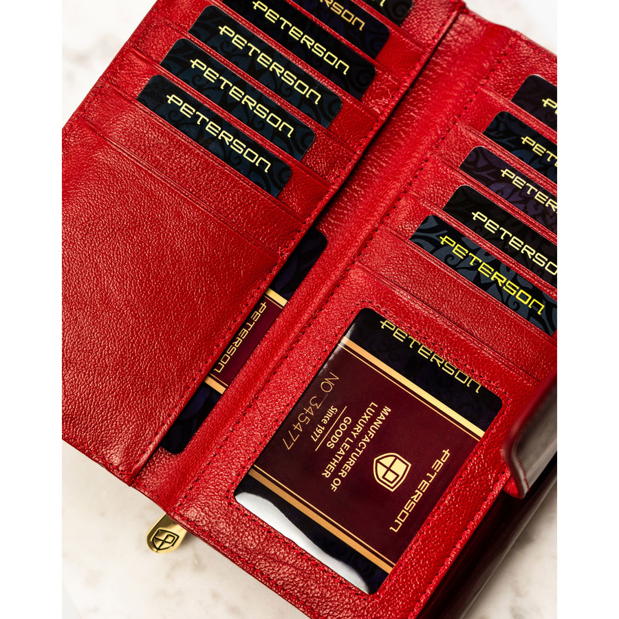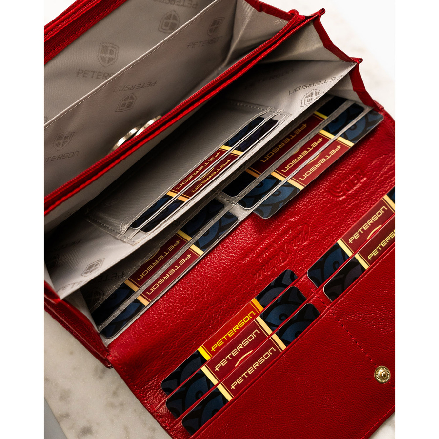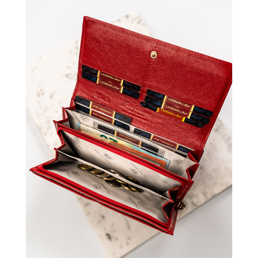 Portfel oprócz rozbudowanych schowków na karty bankowe i dokumenty posiada również schowki na tradycyjną gotówkę: