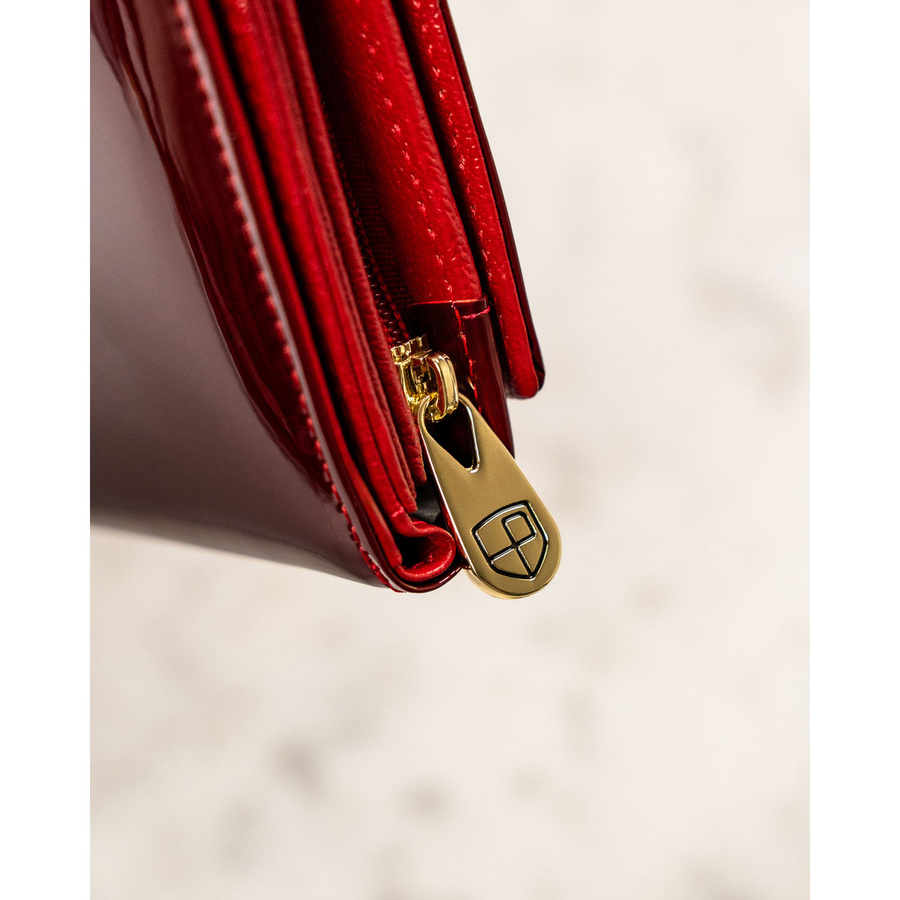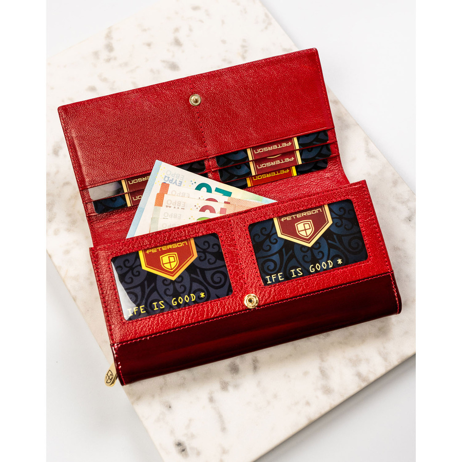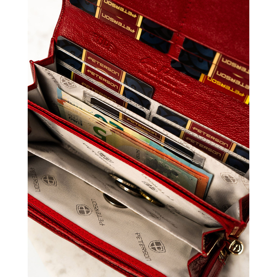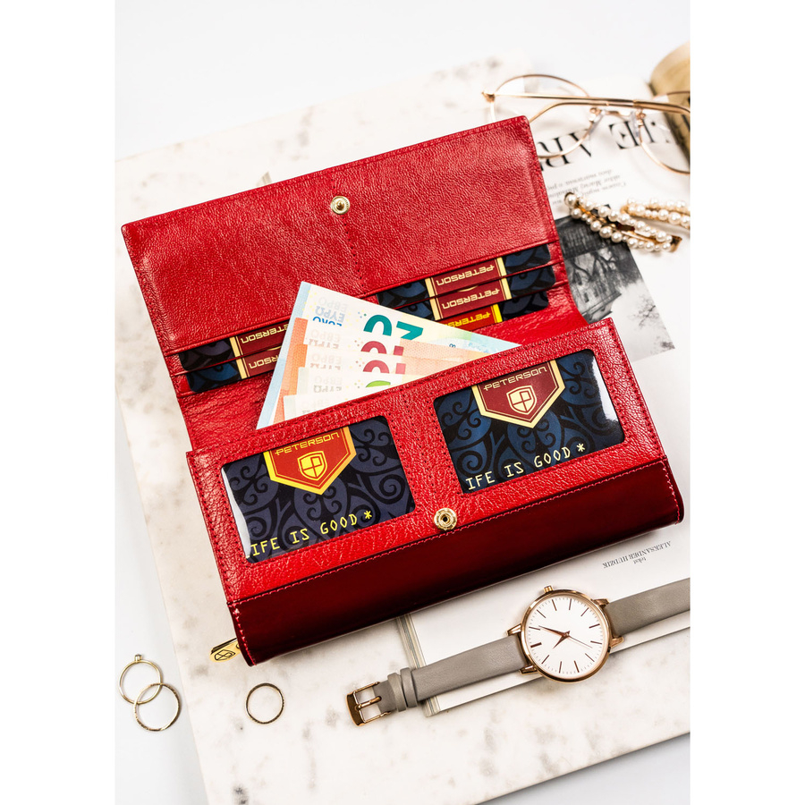Portfel oprócz rozbudowanych schowków na karty bankowe i dokumenty posiada również schowki na tradycyjną gotówkę: