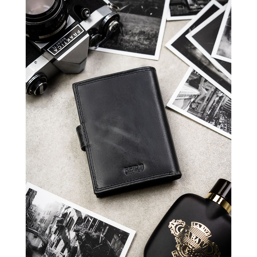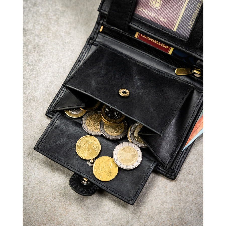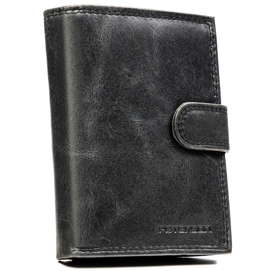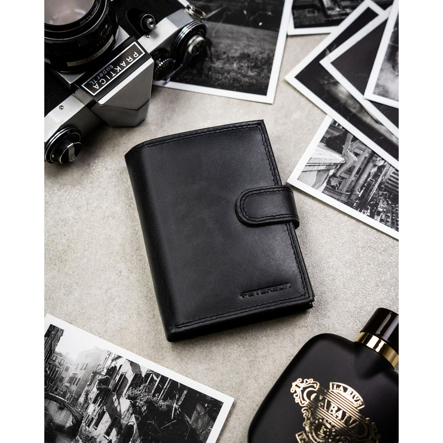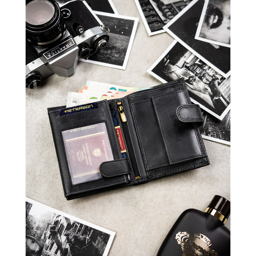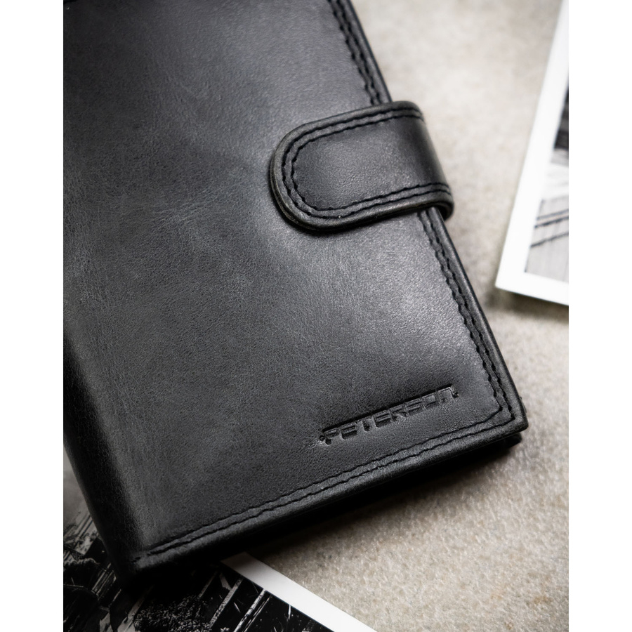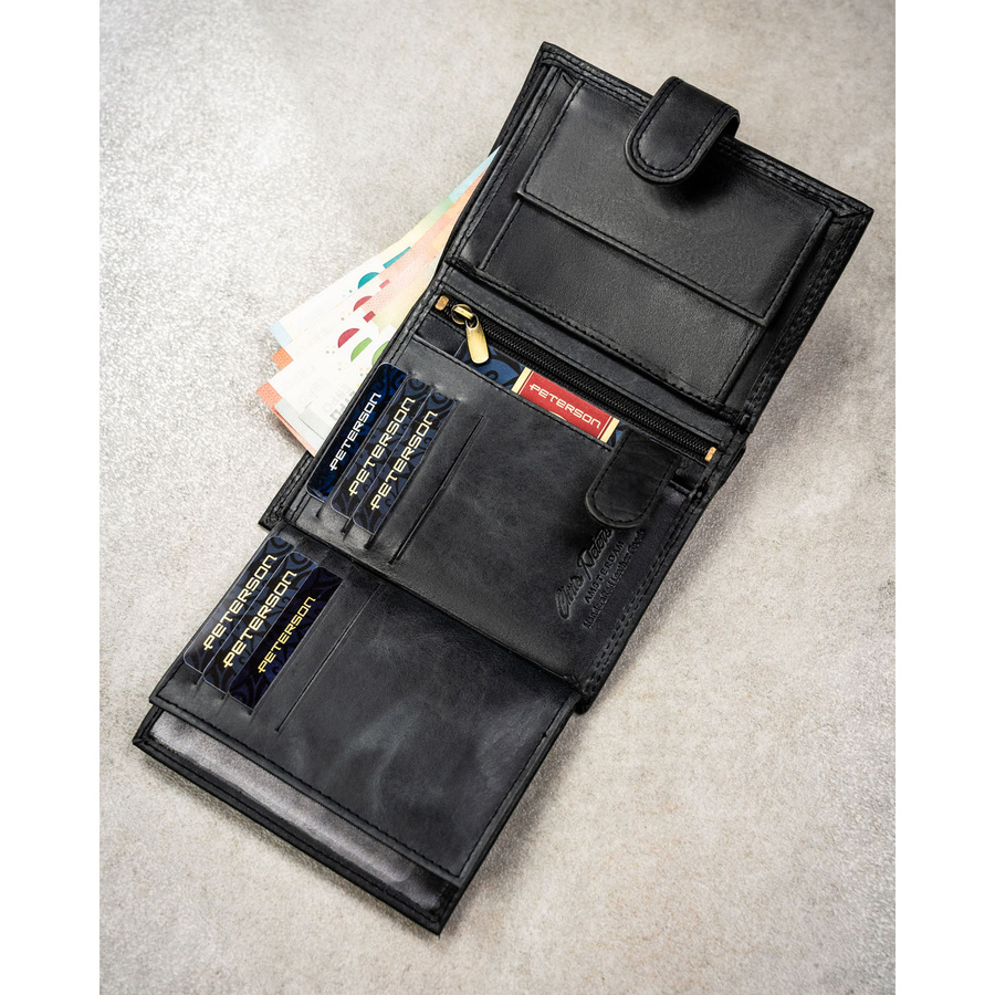 Pionowy portfel męski ze skóry naturalnej w czarnym kolorze zamykany na zatrzask - Peterson