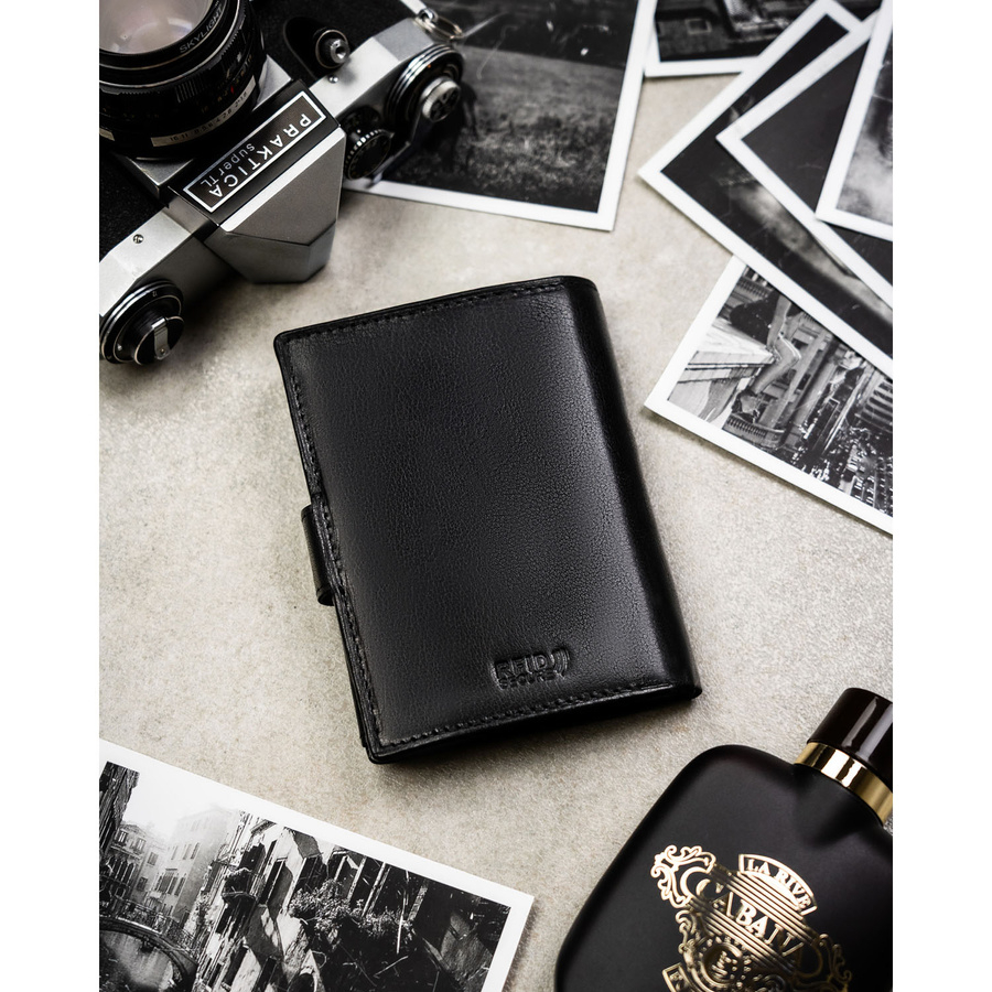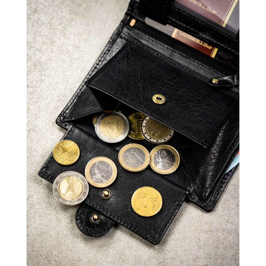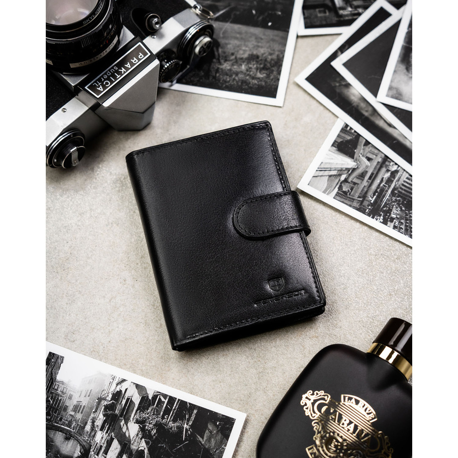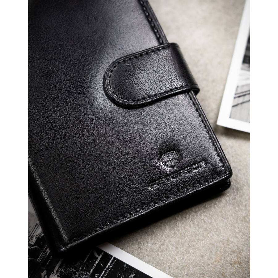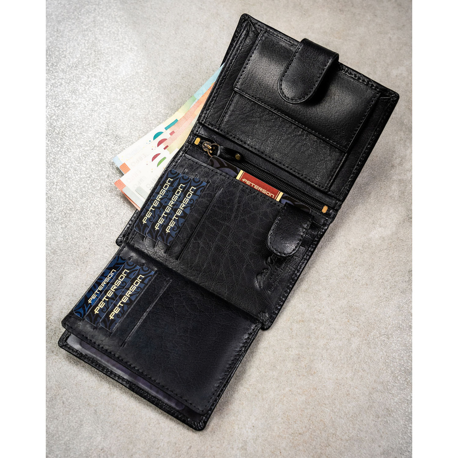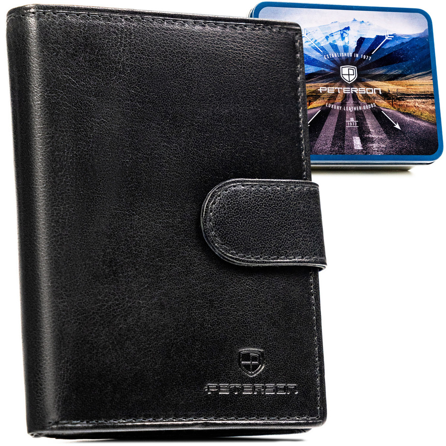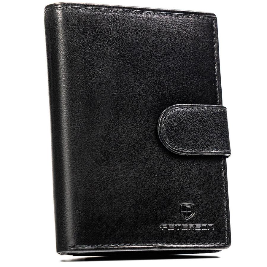 Klasyczny, skórzany portfel męski w czarnym kolorze zamykany zatrzaskiem - Peterson
