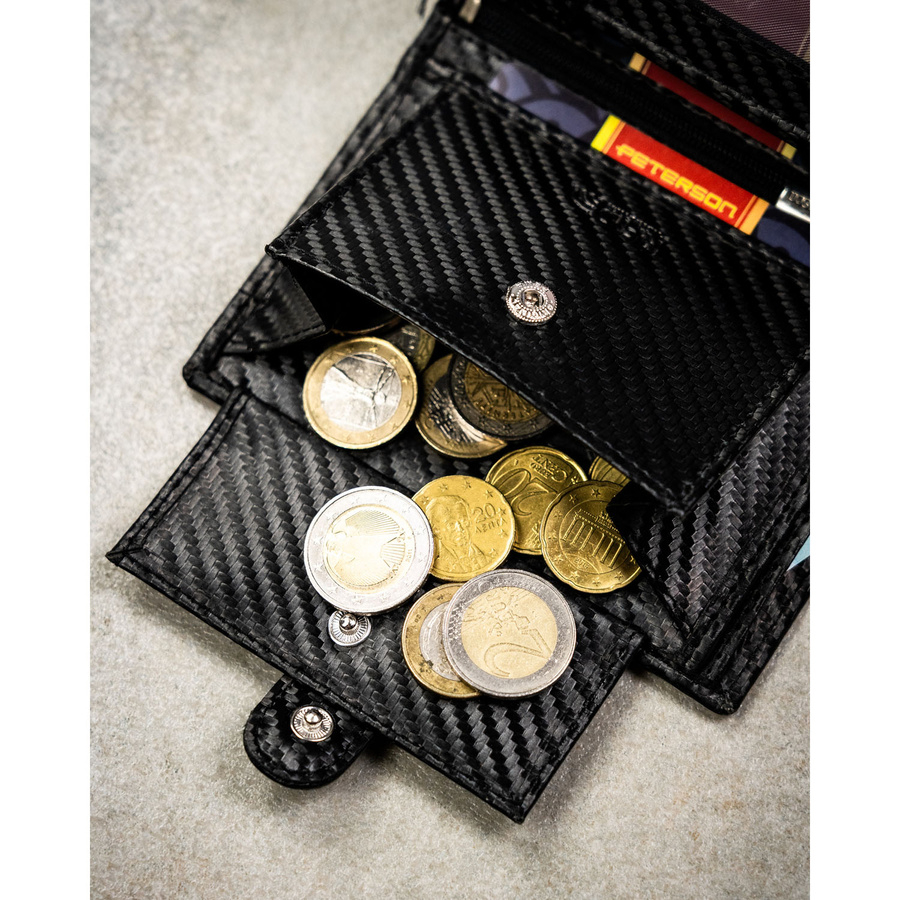 - kieszeń na bilon ze zapięciem na zatrzask – monety zawsze na swoim miejscu,