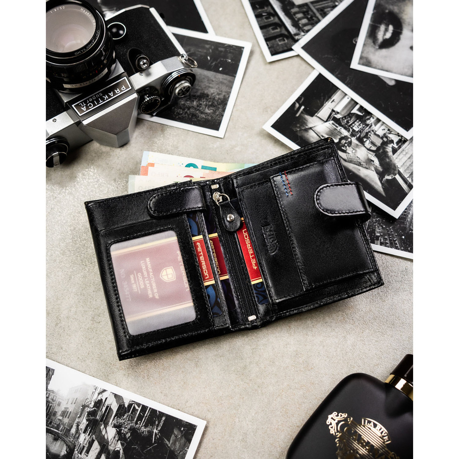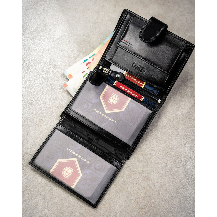 Portfel zaprojektowano tak, aby zapewnić wygodę i porządek. Wszystkie dokumenty, rachunki i karty znajdą tu swoje miejsce — bez upychania i chaosu. W środku znajdziesz: