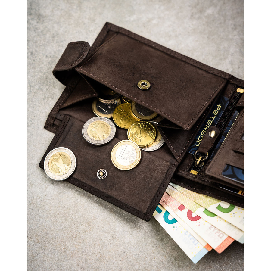 Portfel oferuje wygodną przestrzeń na przechowywanie zarówno monet, jak i banknotów.