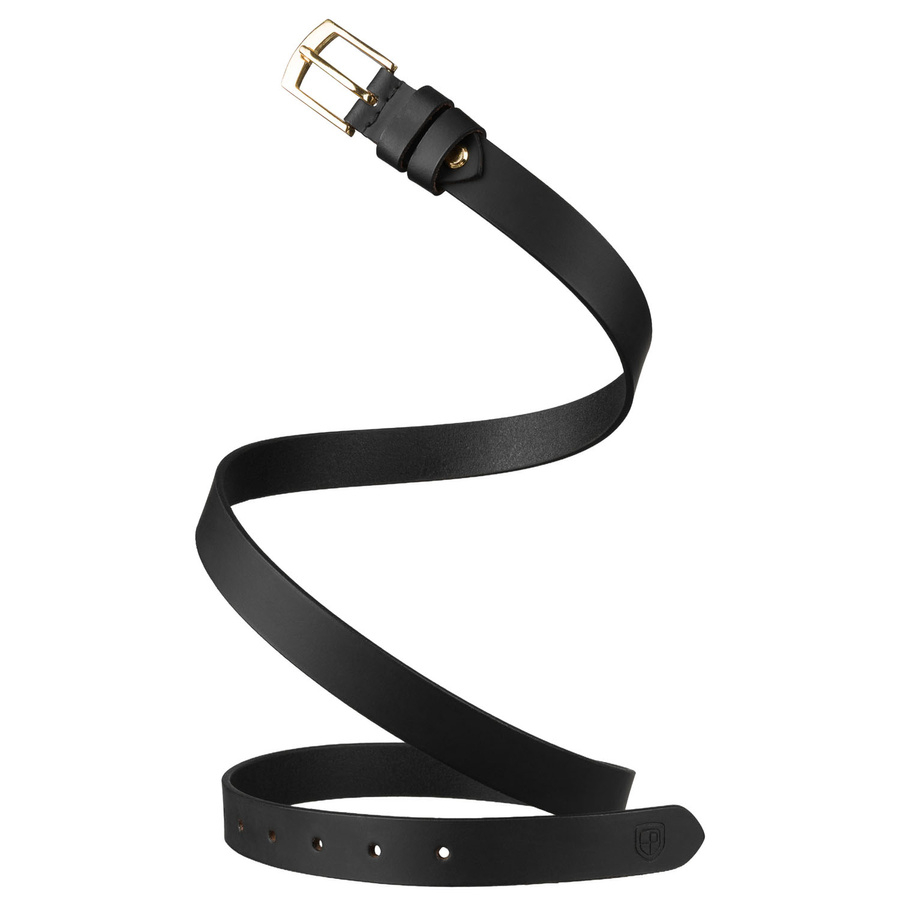 Skórzany pasek damski w czarnym kolorze ze złotą, klasyczną klamrą - Peterson