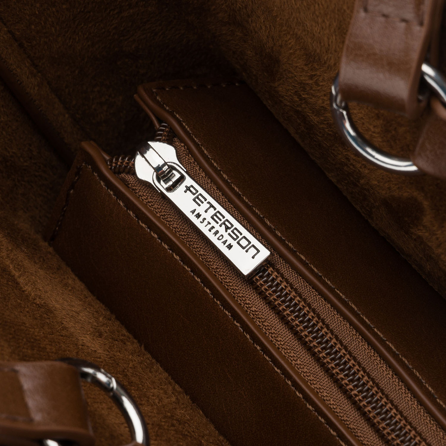 Brązowa shopperka damska wykonana ze skóry ekologicznej, jednokomorowa i zamykana suwakiem - Peterson