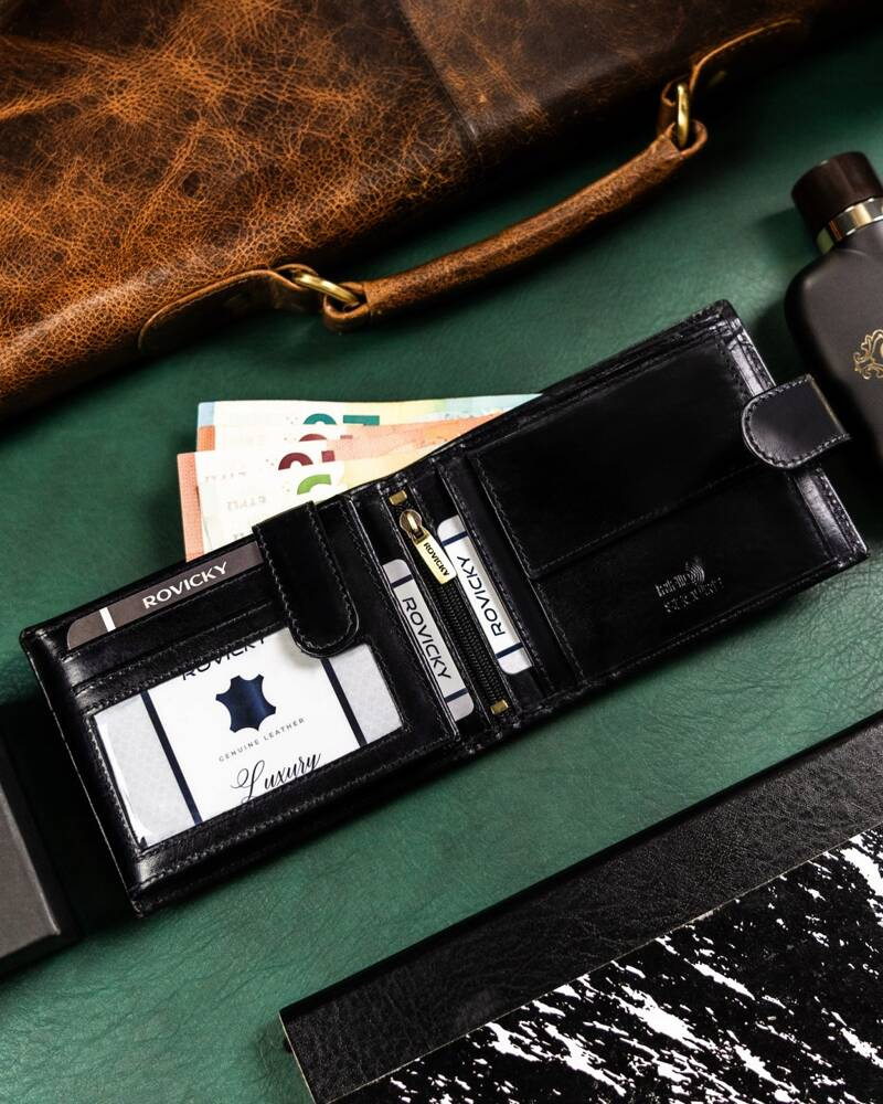 Duży, skórzany portfel męski na zatrzask — Rovicky