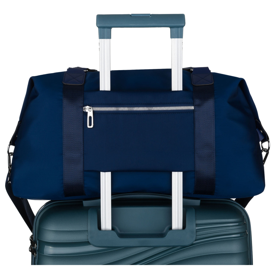 Torba została wyposażona w praktyczny uchwyt umożliwiający nasunięcie jej na stelaż walizki. To rozwiązanie docenisz podczas podróży służbowych i wyjazdów – zapewnia stabilność, wygodę i odciąża ręce, gdy przemieszczasz się z bagażem.