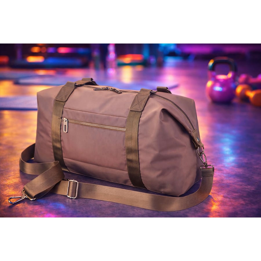 Brązowa torba treningowa z poliestru, jednokomorowa i zamykana suwakiem - Peterson