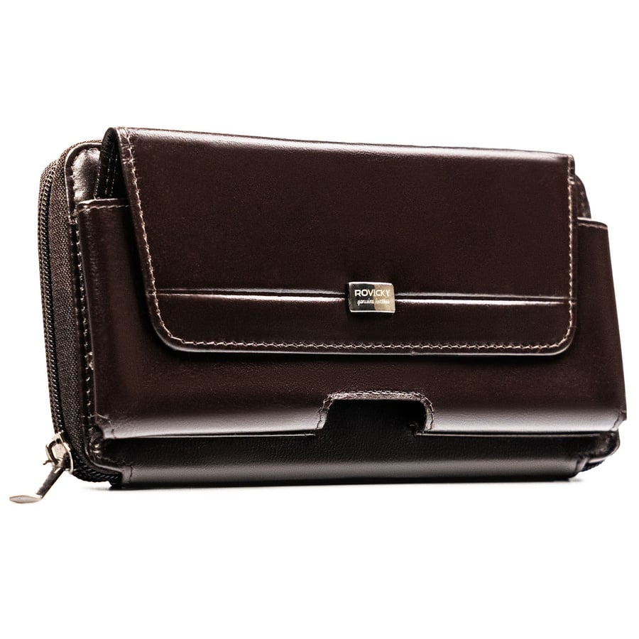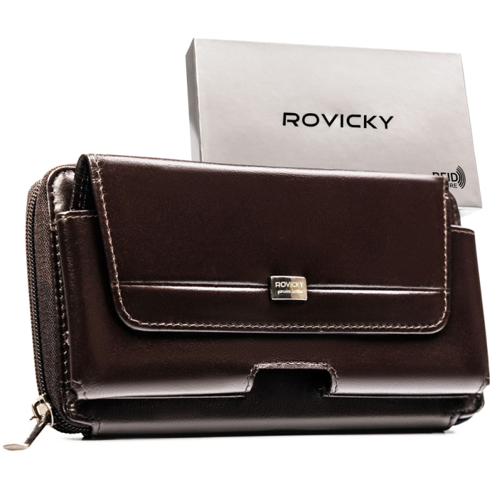 Skórzana, brązowa saszetka męska z systemem RFID - Rovicky