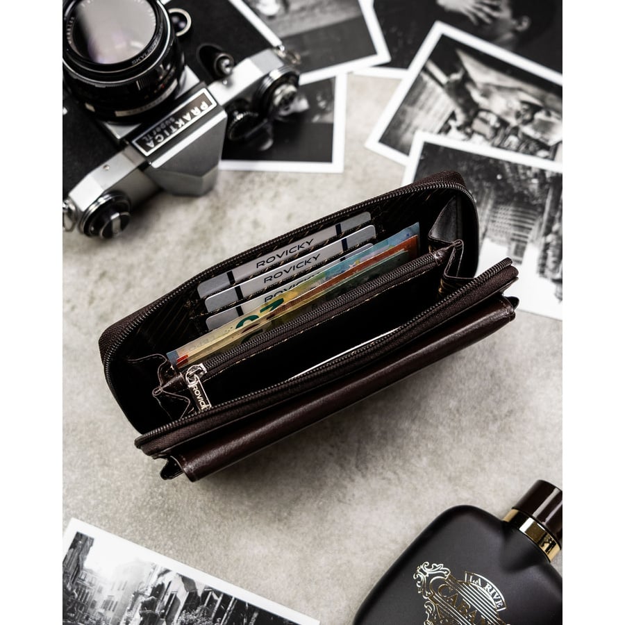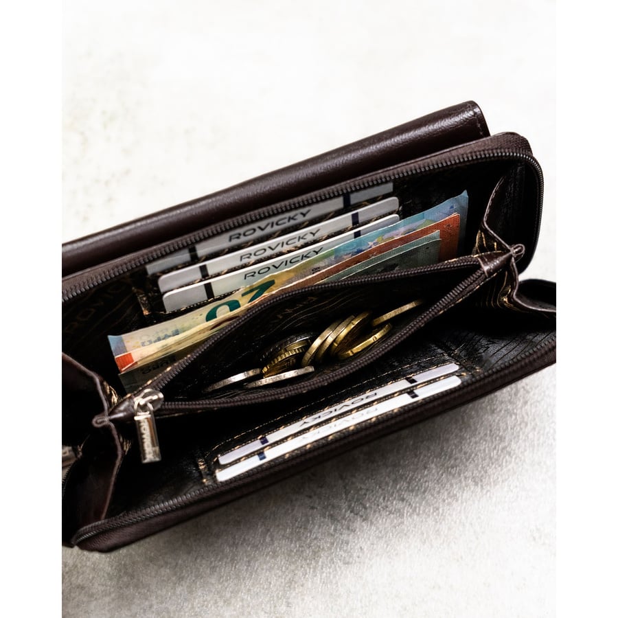 • 8 dedykowanych przegródek na karty płatnicze, wizytówki lub dokumenty w standardowym formacie (np. dowód osobisty, prawo jazdy),