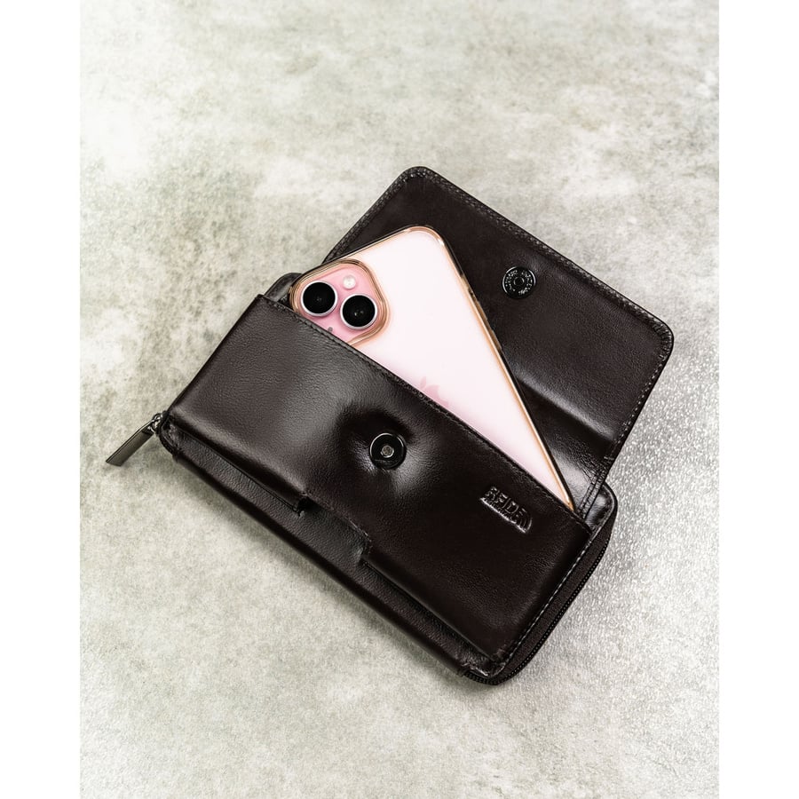 • Maksymalna funkcjonalność na co dzień | Model został zaprojektowany tak, aby pomieścić gotówkę, karty oraz najważniejsze dokumenty. Dodatkowa kieszeń dedykowana na telefon zwiększa wygodę użytkowania, a tylna szlufka umożliwia stabilne przypięcie saszetki do paska.