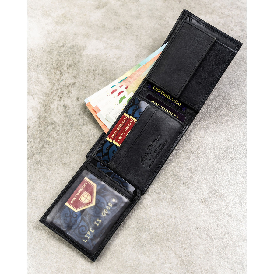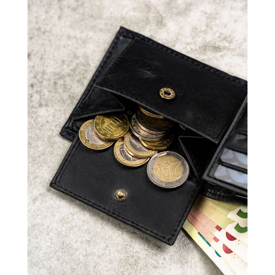 - 1 kieszeń na bilon, zamykaną wygodnym zatrzaskiem – umieszczoną wewnątrz portfela dla większego bezpieczeństwa. Gotówkę możesz przechowywać w: 2 pojemnych, otwartych przegrodach, które bez trudu pomieszczą banknoty i ułatwią szybki dostęp do pieniędzy.
