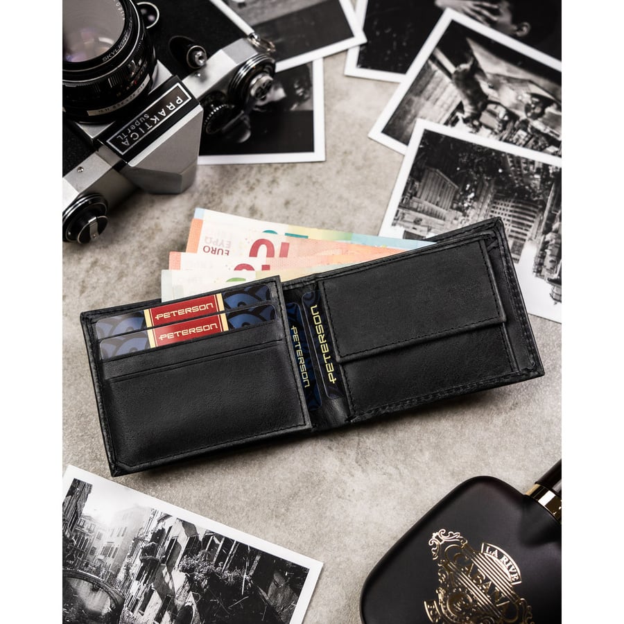 Niewielki rozmiar, a zaskakująco duża pojemność! Portfel został zaprojektowany w bardzo praktyczny sposób – jego wnętrze oferuje liczne schowki i przegródki, dzięki którym bez problemu uporządkujesz karty, dokumenty oraz gotówkę.