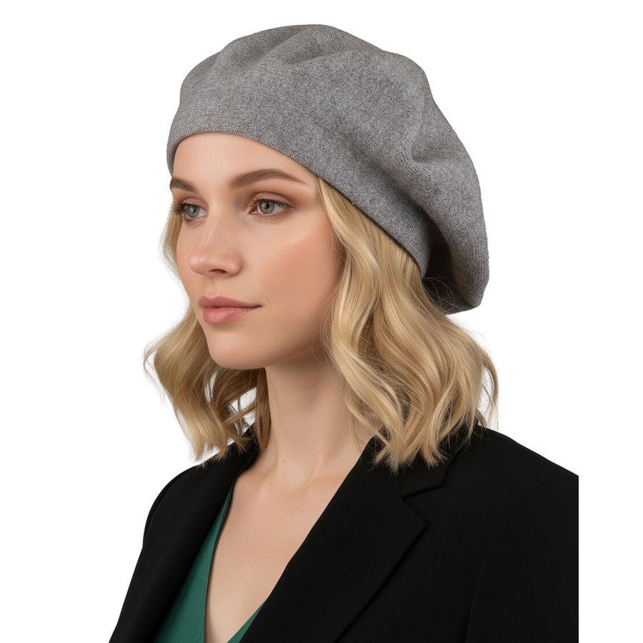 Ciepły, szary beret damski wykonany z akrylu - Rovicky