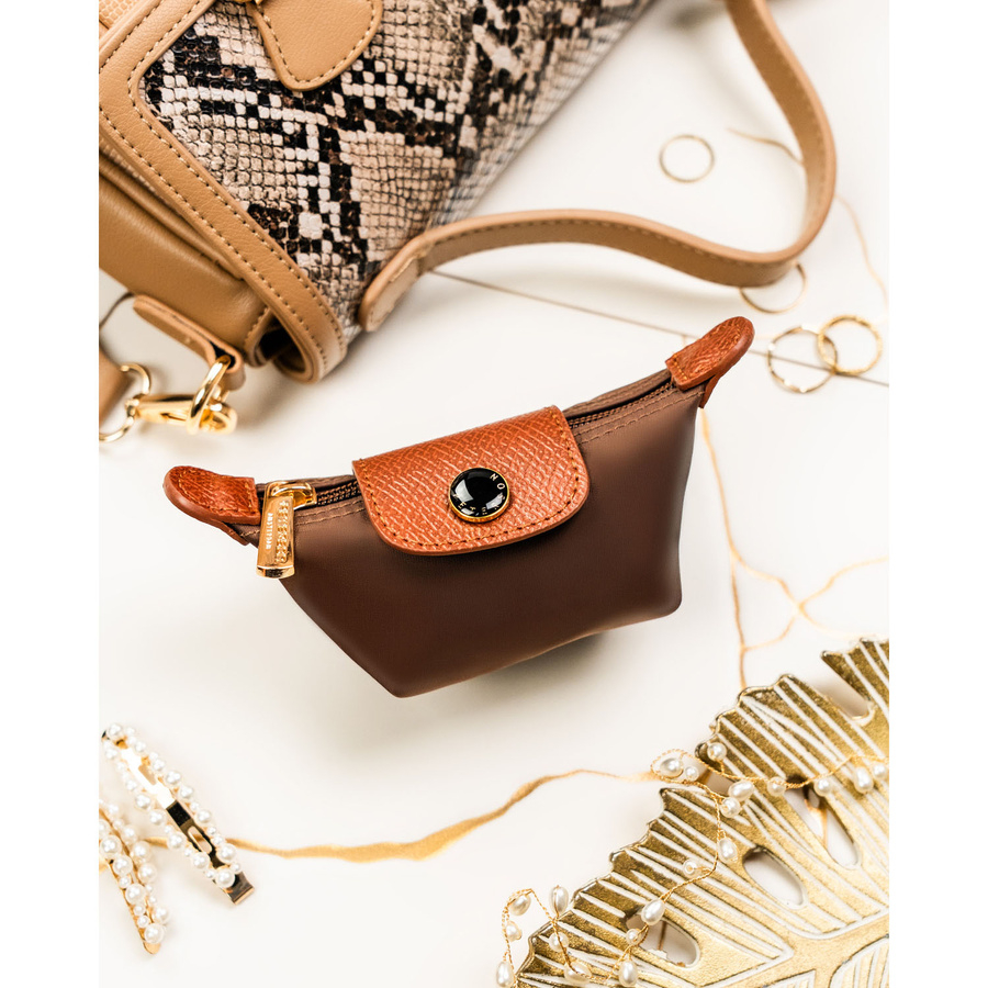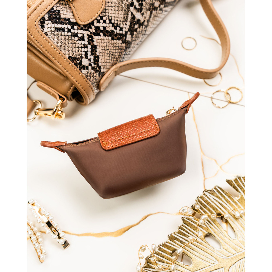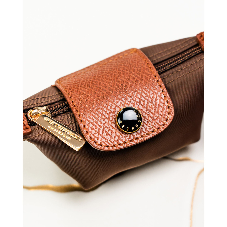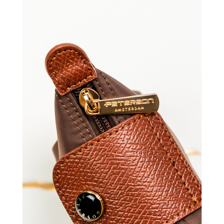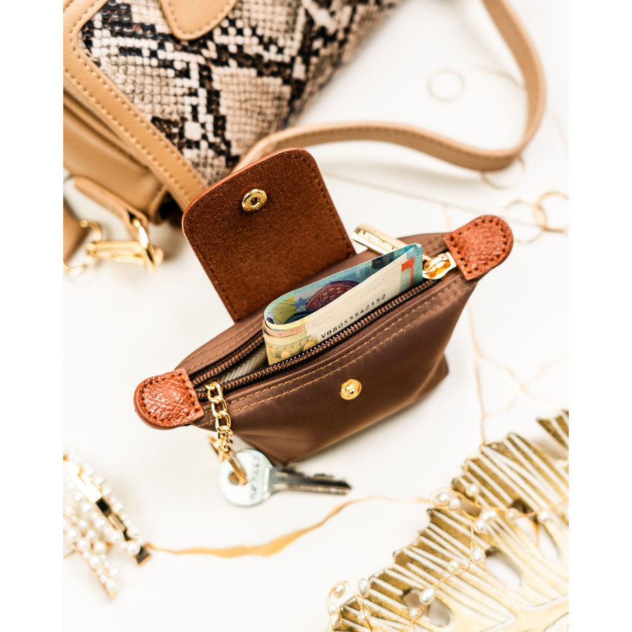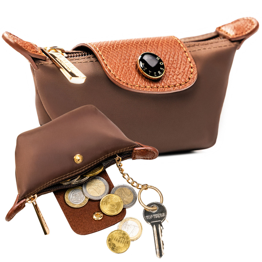 Etui na klucze wykonane z poliestru i skóry ekologicznej w brązowym kolorze, zamykane na zatrzask i suwak - Peterson