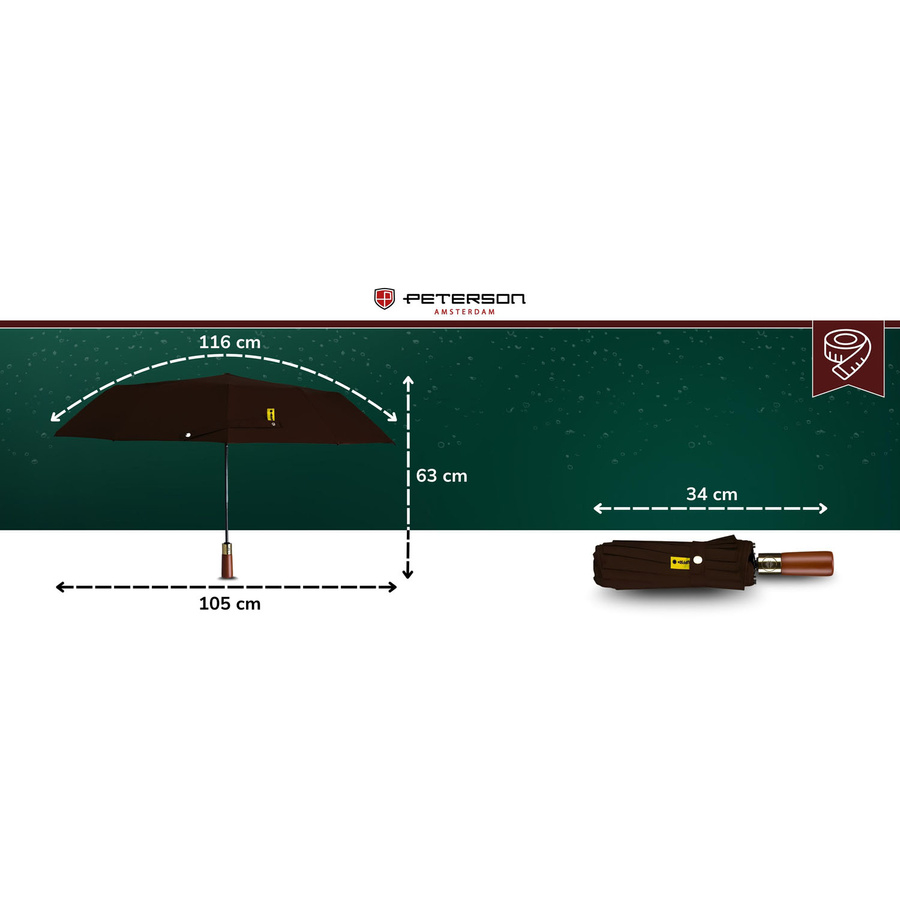 Po złożeniu parasol ma zaledwie 34 cm długości, co pozwala wygodnie schować go w torbie, plecaku lub teczce. Zmieści się nawet w bagażu podręcznym!