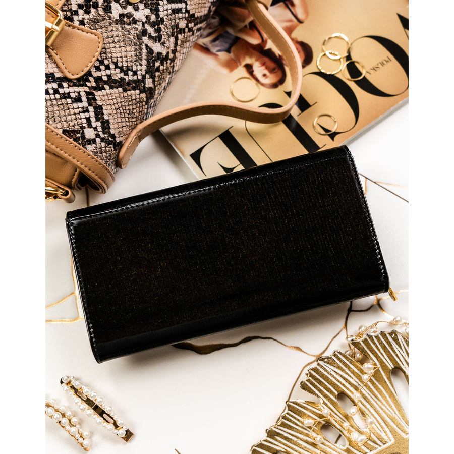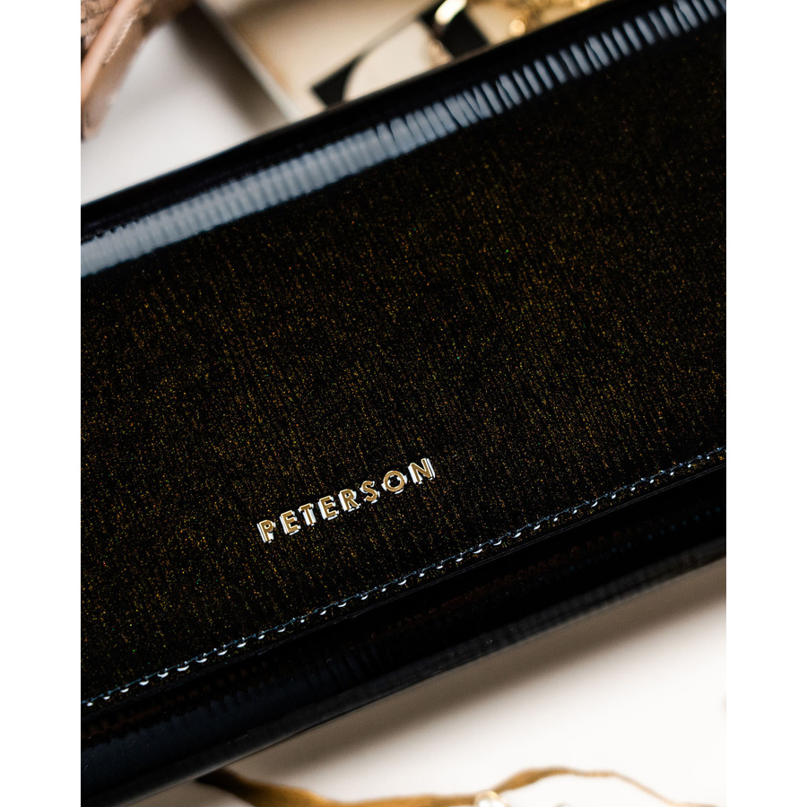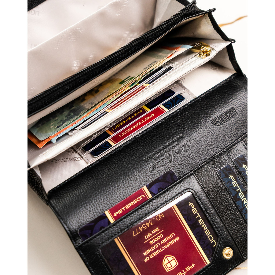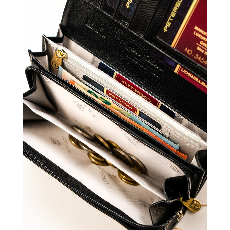 Portfel damski ze skóry naturalnej w czarnym kolorze, wyposażony w system RFID - Peterson