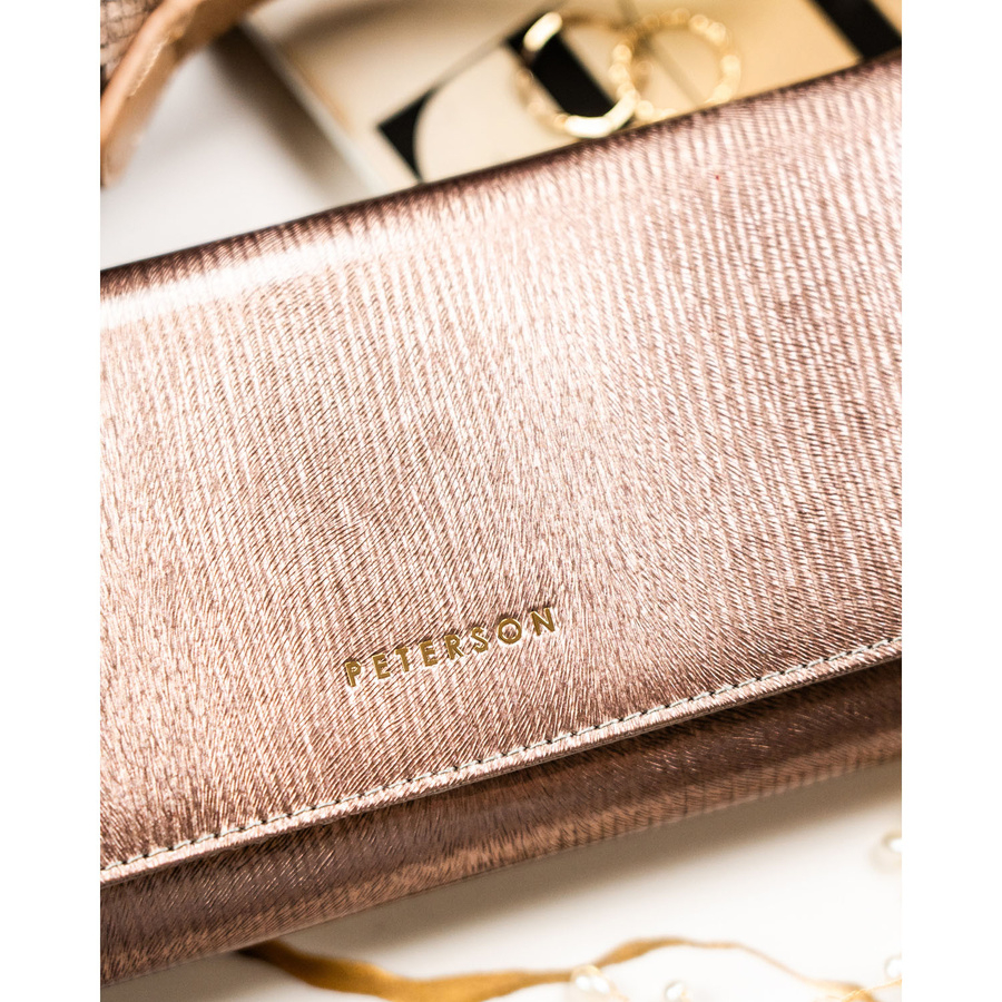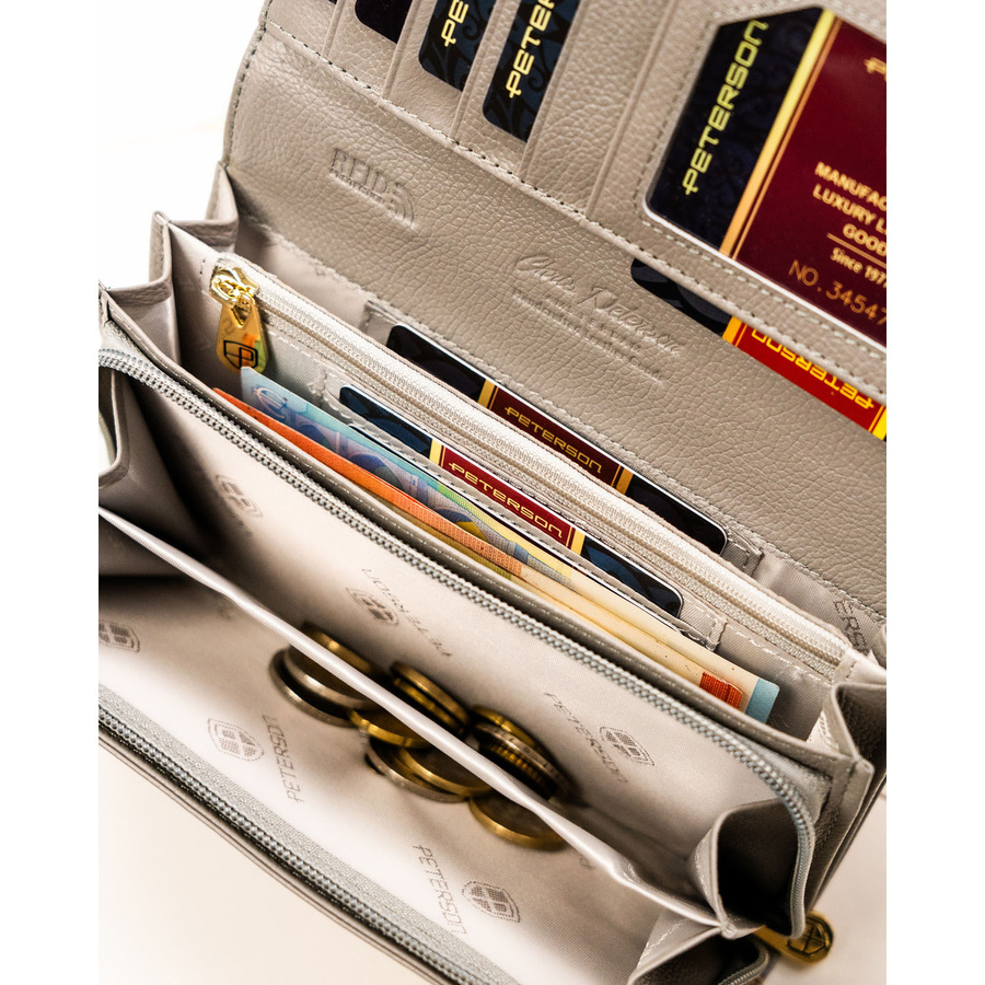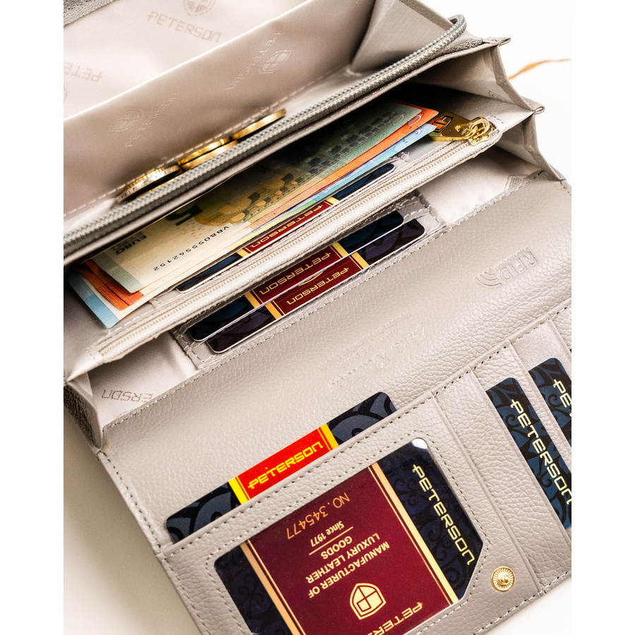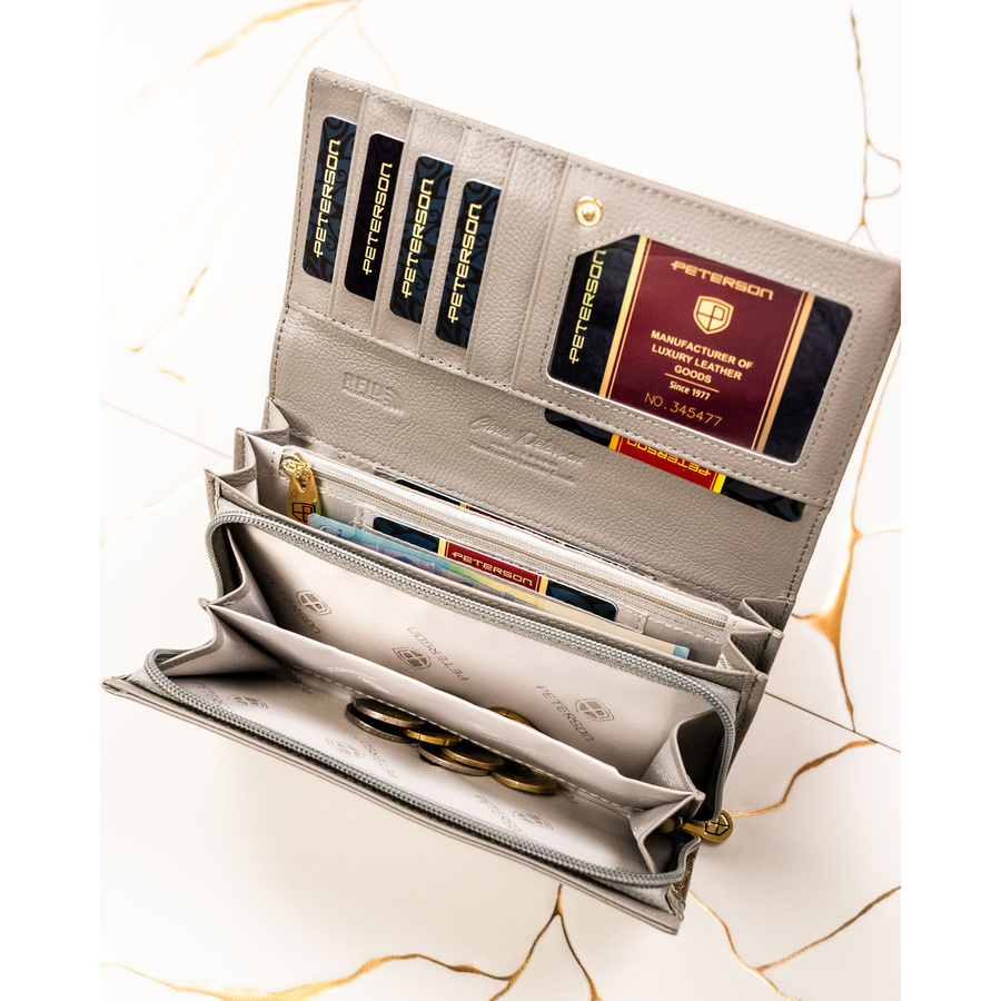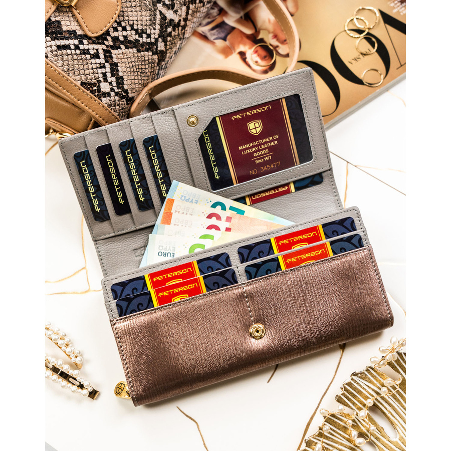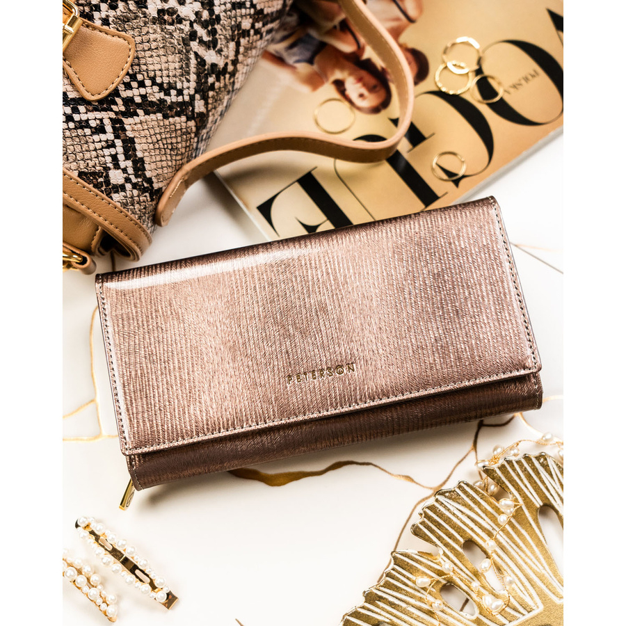 Portfel damski ze skóry naturalnej w brązowym kolorze, wyposażony w system RFID - Peterson