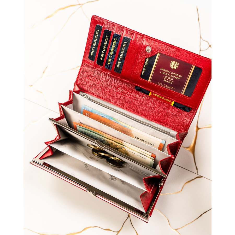 Portfel Peterson to nie tylko piękny wygląd, ale także niezwykle funkcjonalne wnętrze. Dzięki wielu przegrodom i kieszeniom, idealnie organizuje przestrzeń, aby wszystko było pod ręką: