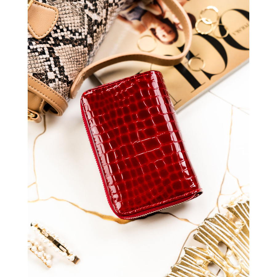 • Naturalna skóra lakierowana | Portfel wykonany ze skóry naturalnej o lakierowanym wykończeniu. Powierzchnię zdobi eleganckie tłoczenie croco, inspirowane skórą krokodyla.
