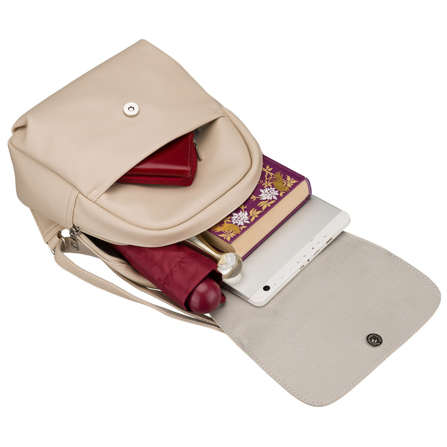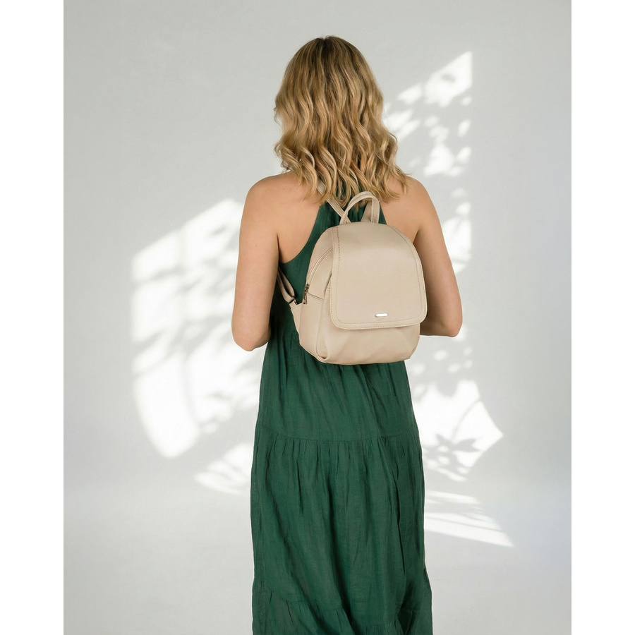 Miejski plecak damski ze skóry ekologicznej w ciemnobeżowym kolorze - Rovicky