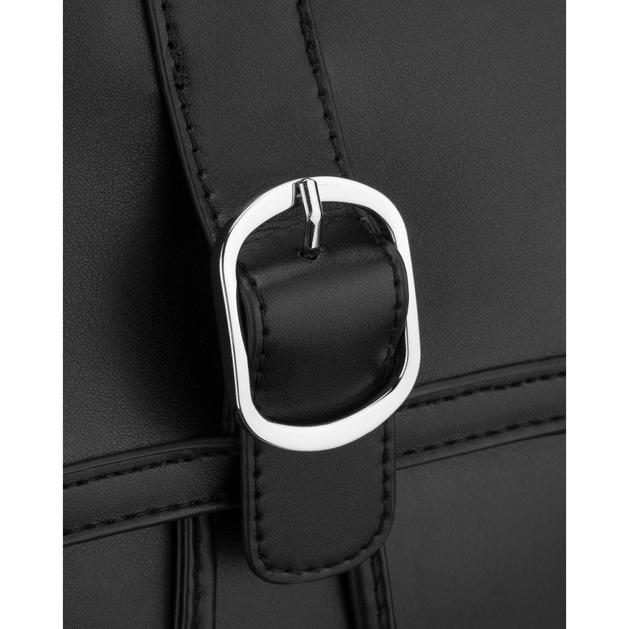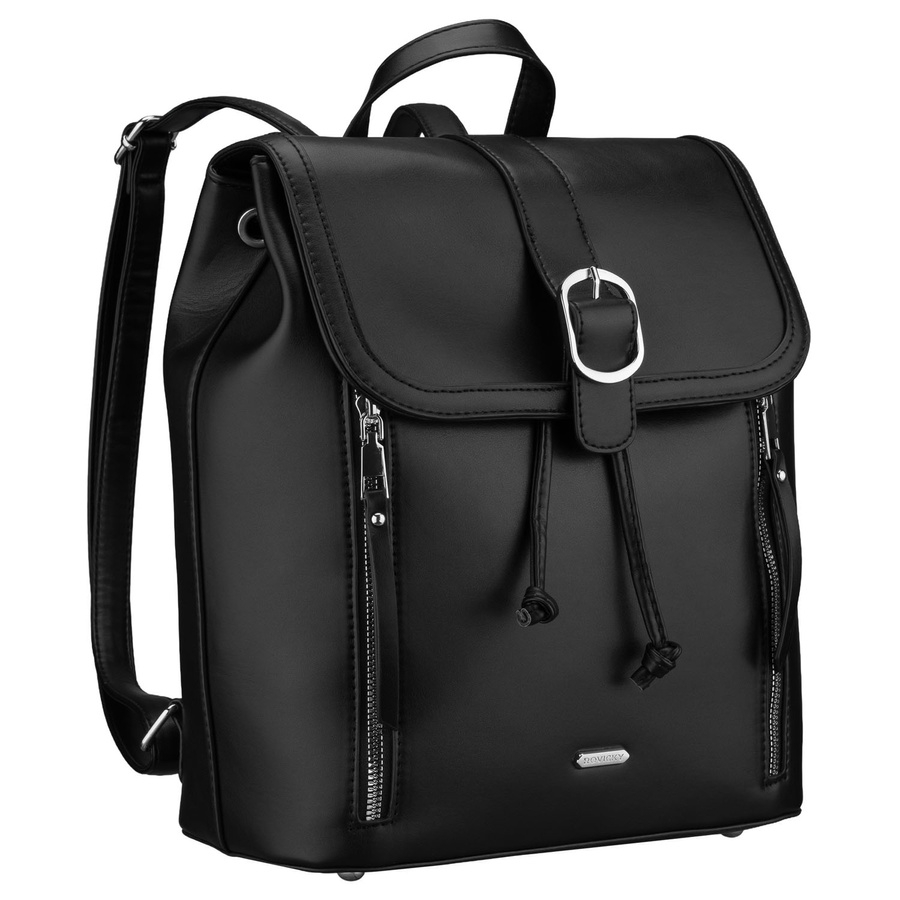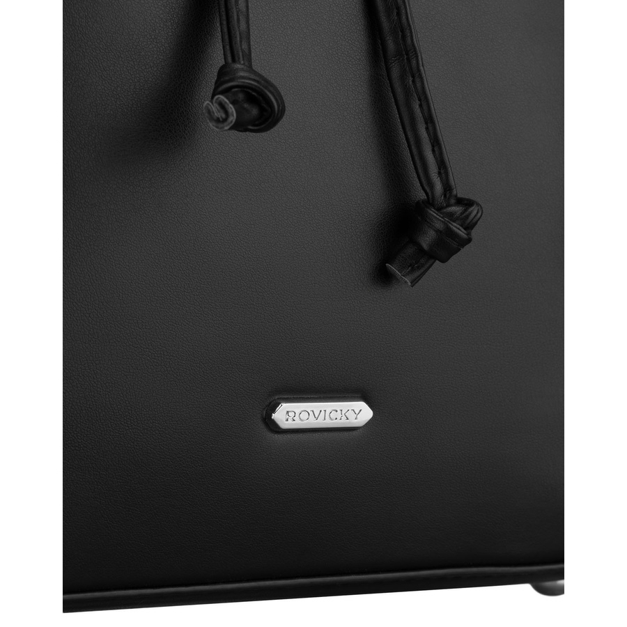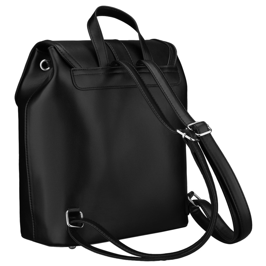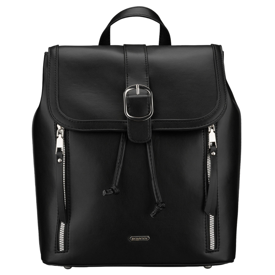 Czarny, niewielki plecak damski ze skóry ekologicznej wyposażony w nóżki ochronne - Rovicky