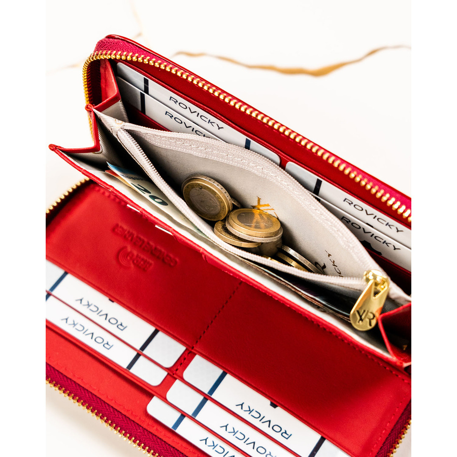 Ten duży portfel damski na suwak został zaprojektowany z myślą o maksymalnej wygodzie użytkowania i przejrzystej organizacji.