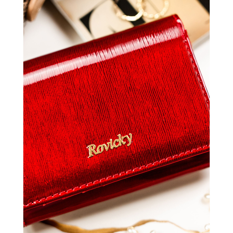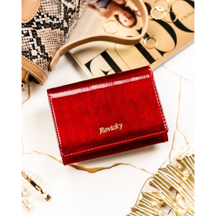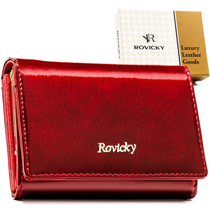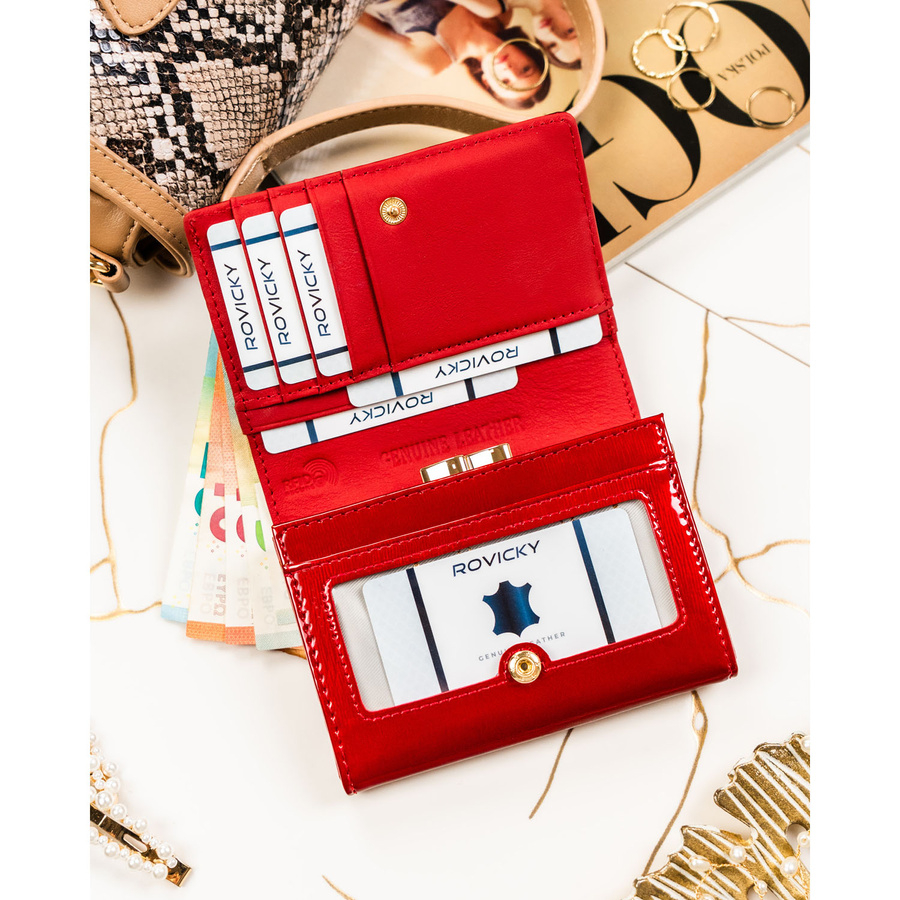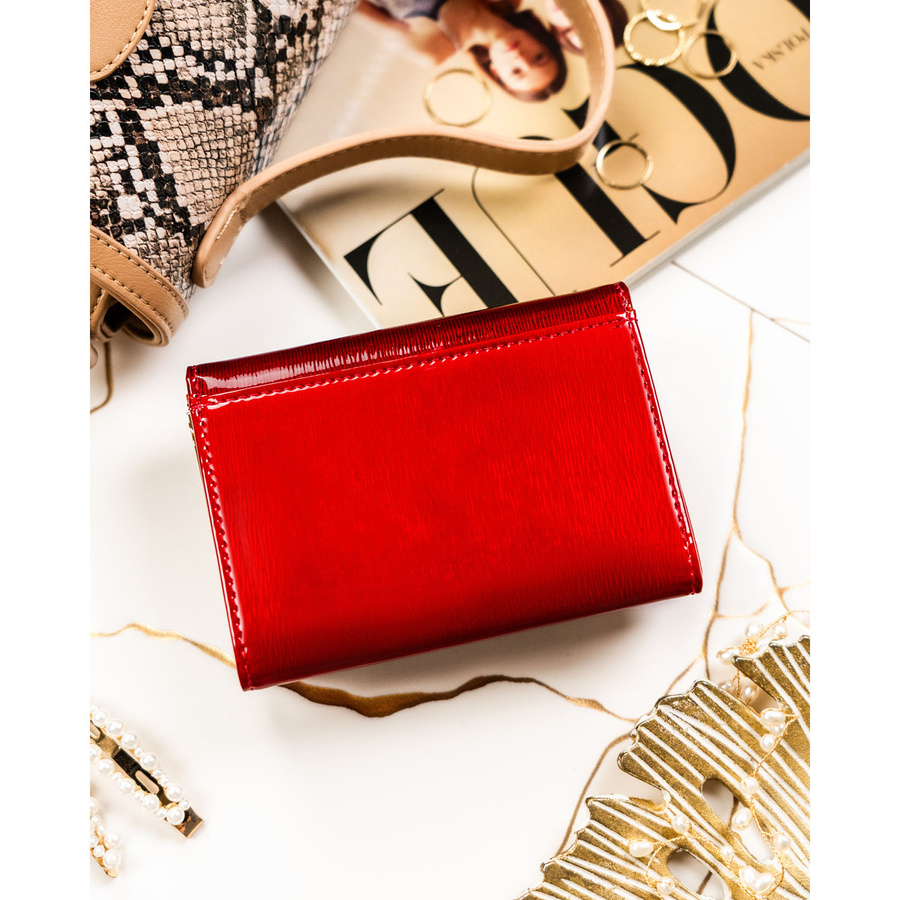Portfel damski z lakierowanej skóry naturalnej w czerwonym kolorze zamykany na zatrzask i bigiel - Rovicky