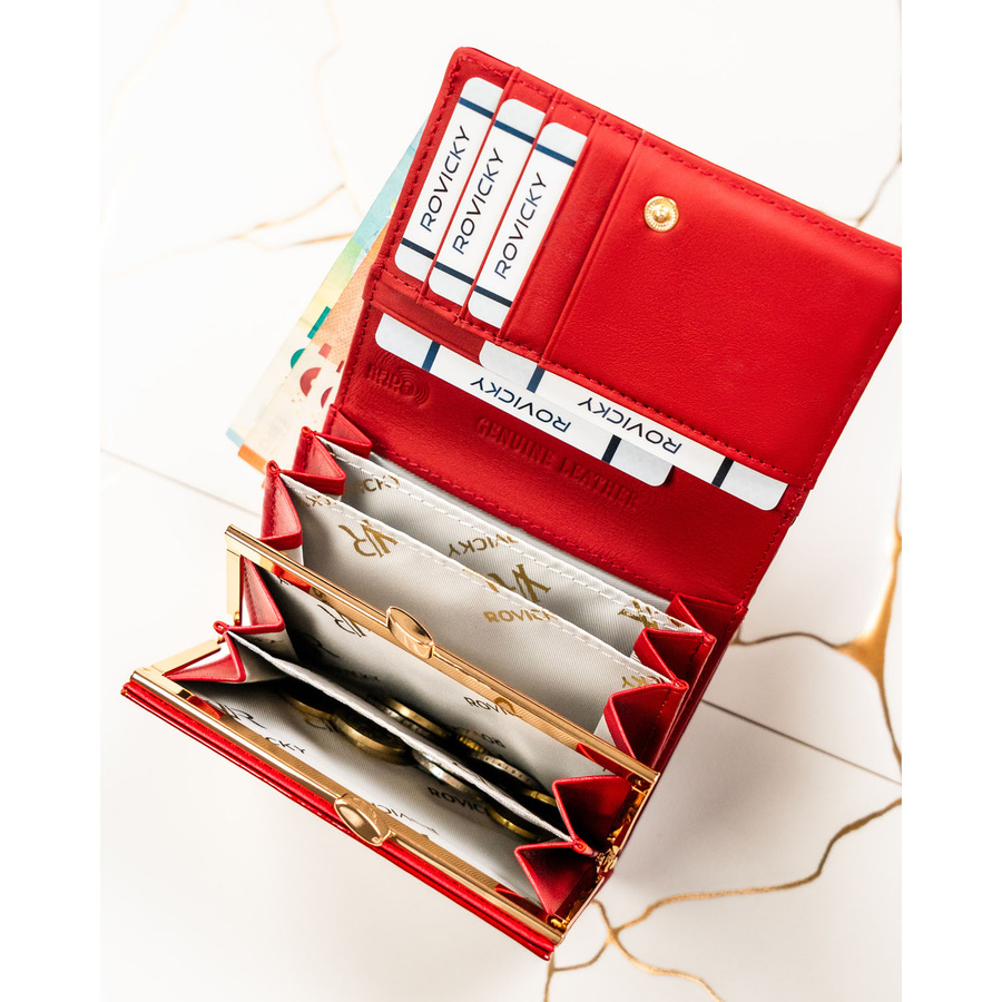 Portfel damski Rovicky® został zaprojektowany z myślą o wygodnym przechowywaniu kart i dokumentów w codziennym użytkowaniu.