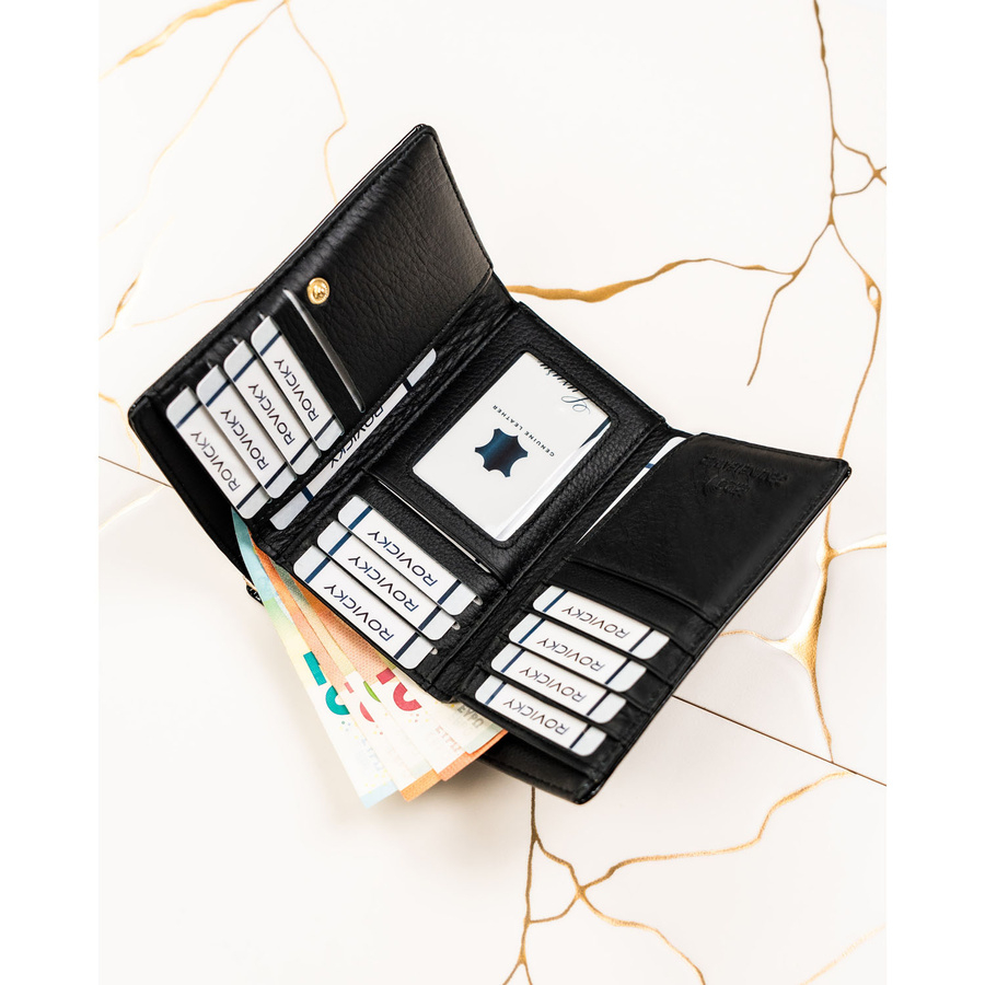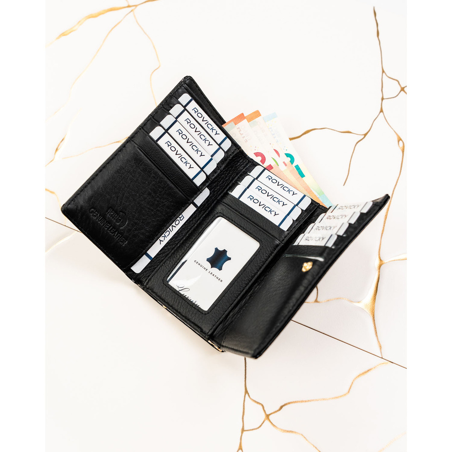 Ten portfel damski skórzany łączy klasyczną elegancję z funkcjonalnością, której oczekujesz w codziennym użytkowaniu. W środku znajdziesz: